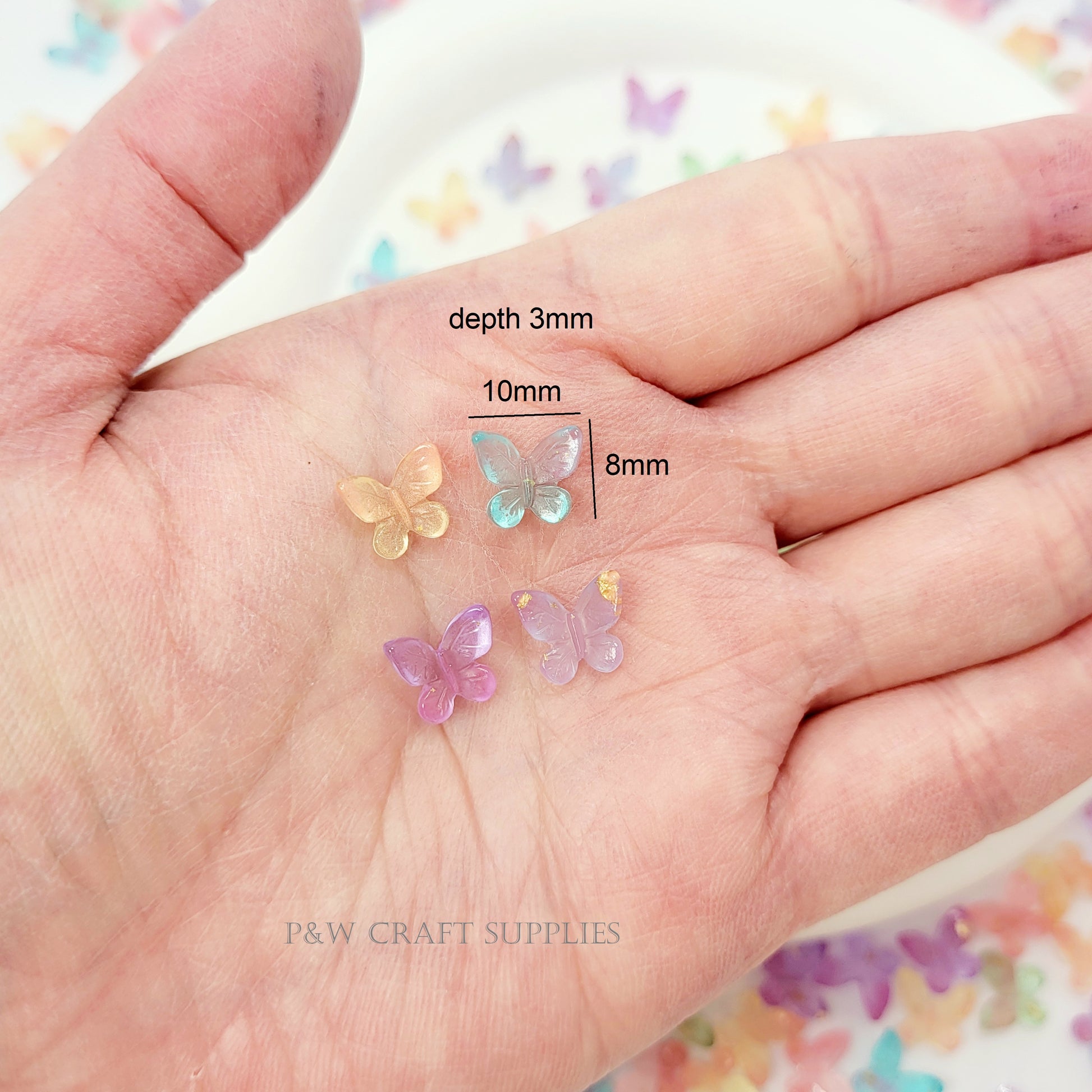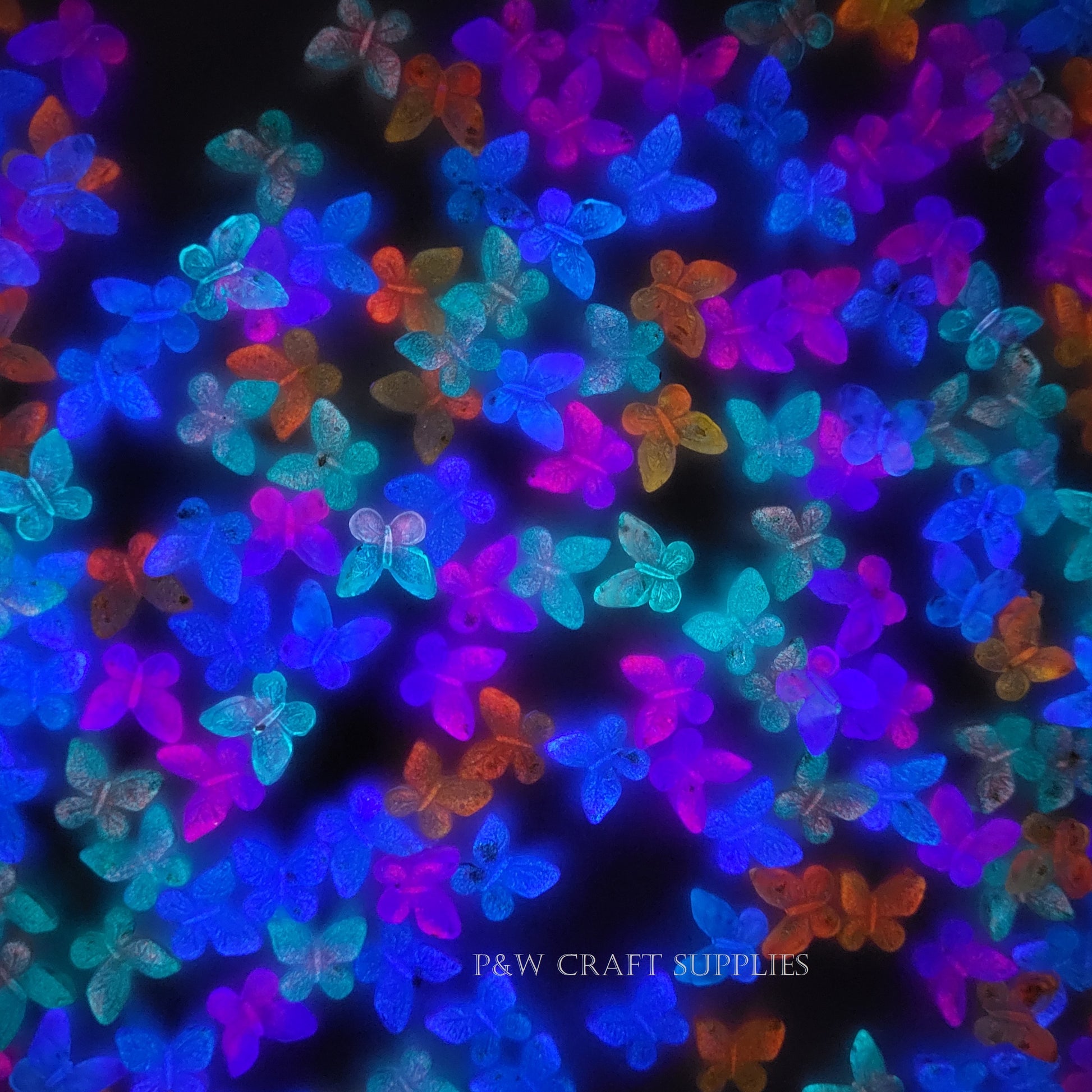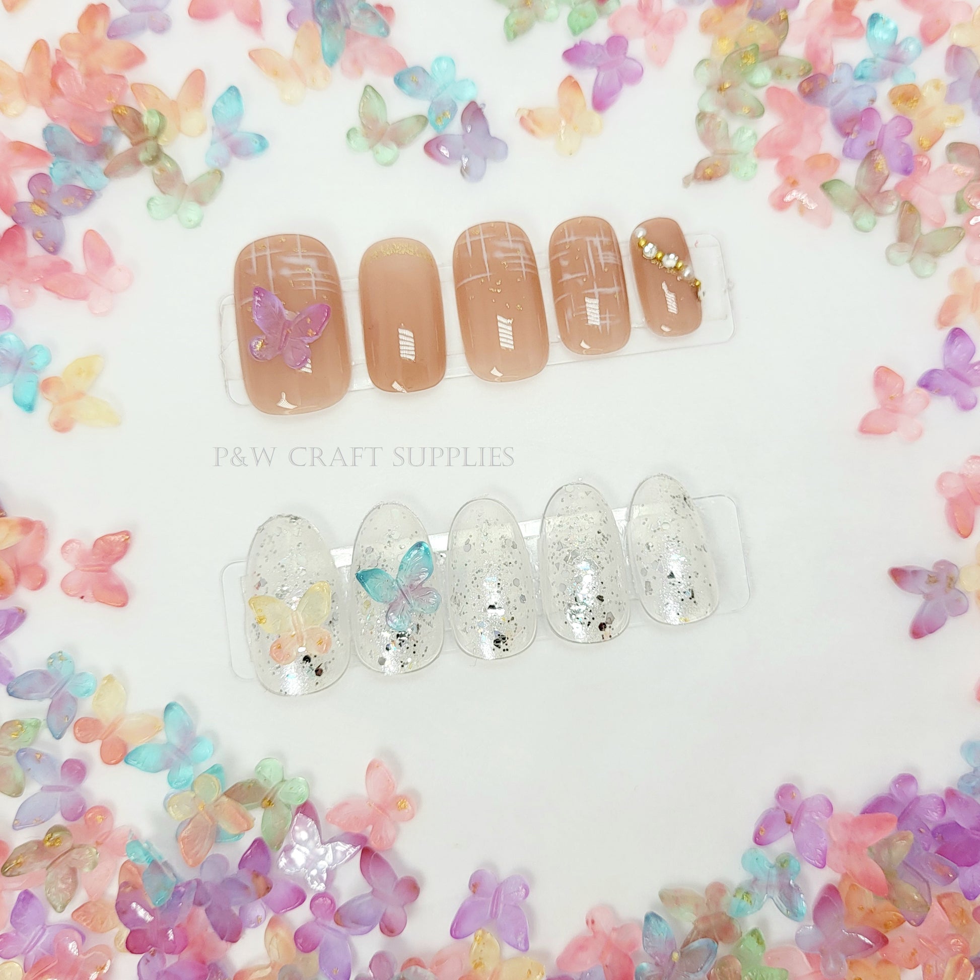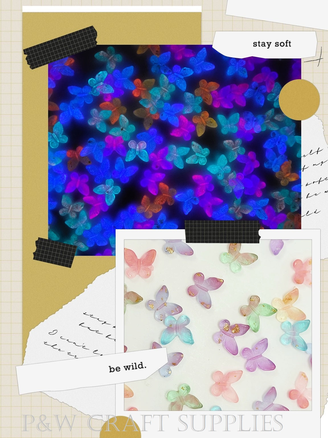 Elevate your nail art with these glow-in-the-dark butterfly nail charms! Featuring soft pastel hues, delicate gold accents, and a glowing effect under light, these enchanting embellishments add a whimsical and elegant touch to any manicure.
