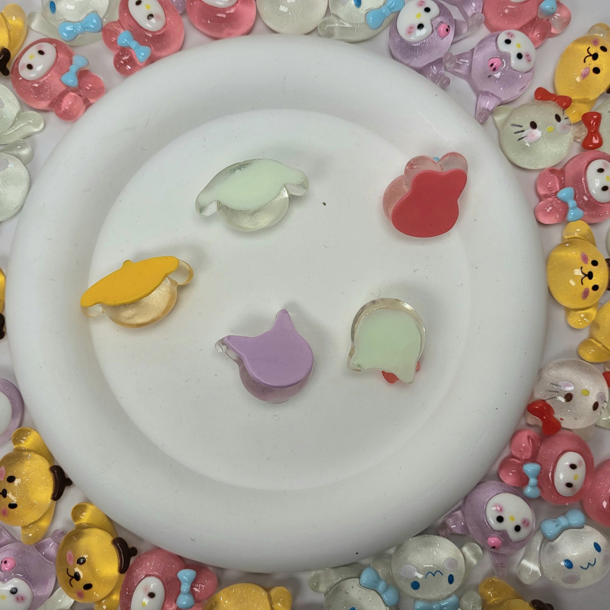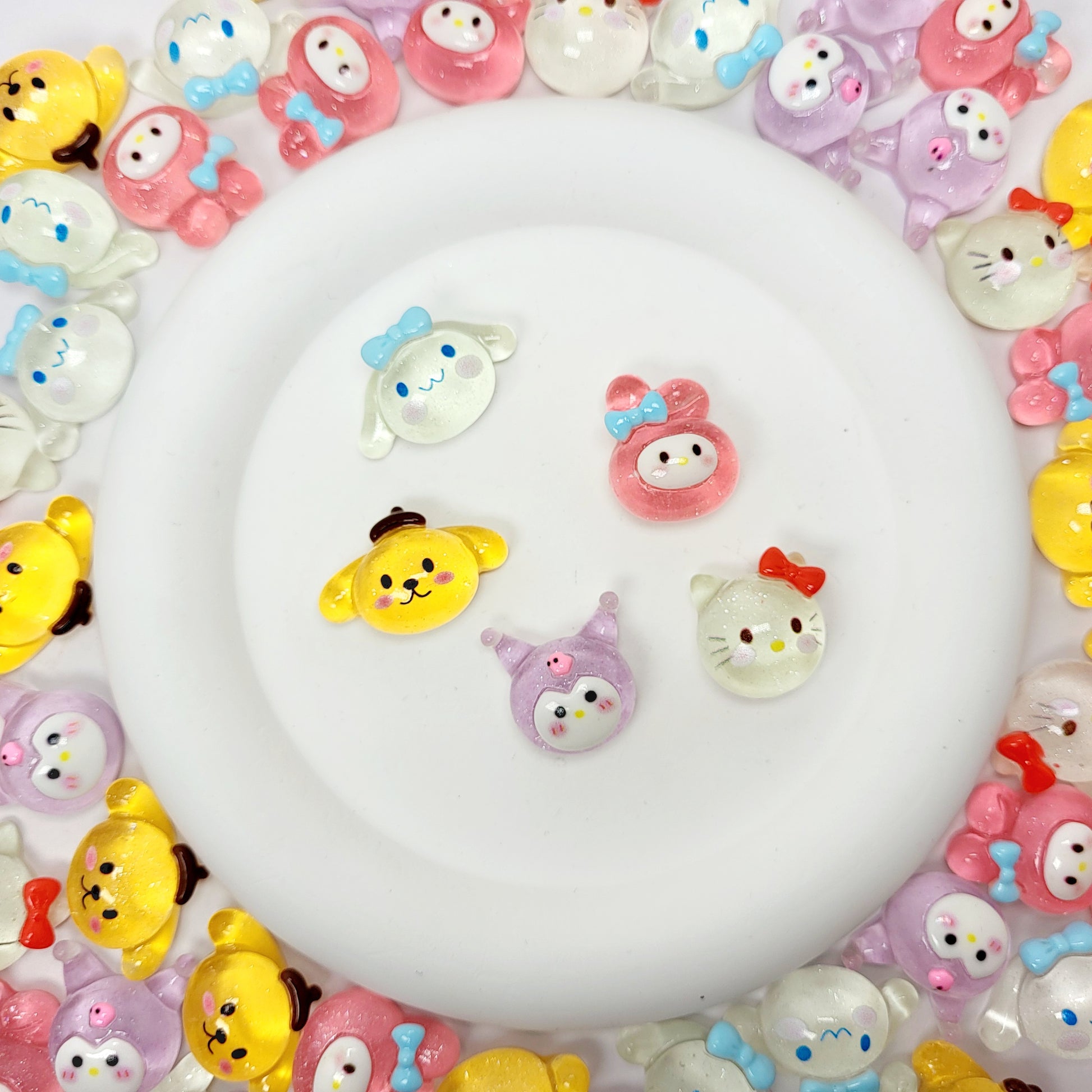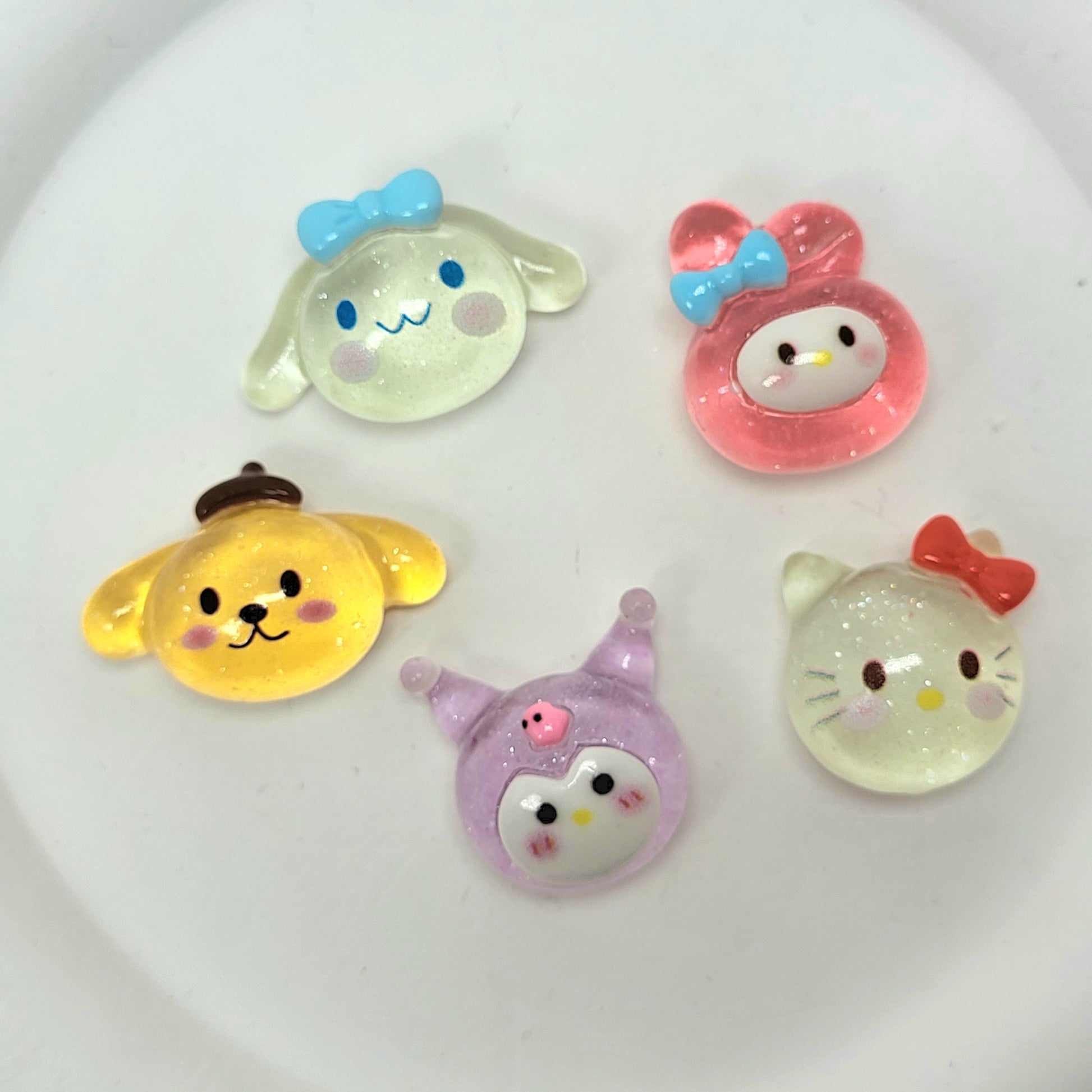 Bring a dose of cuteness to your world with 3D Chubby Charmies! This adorable 5-piece set features your favorite Sanrio-inspired characters in a plump, glossy 3D resin style. Perfect for decorating phone cases, planners, crafts, or displaying in your collection!