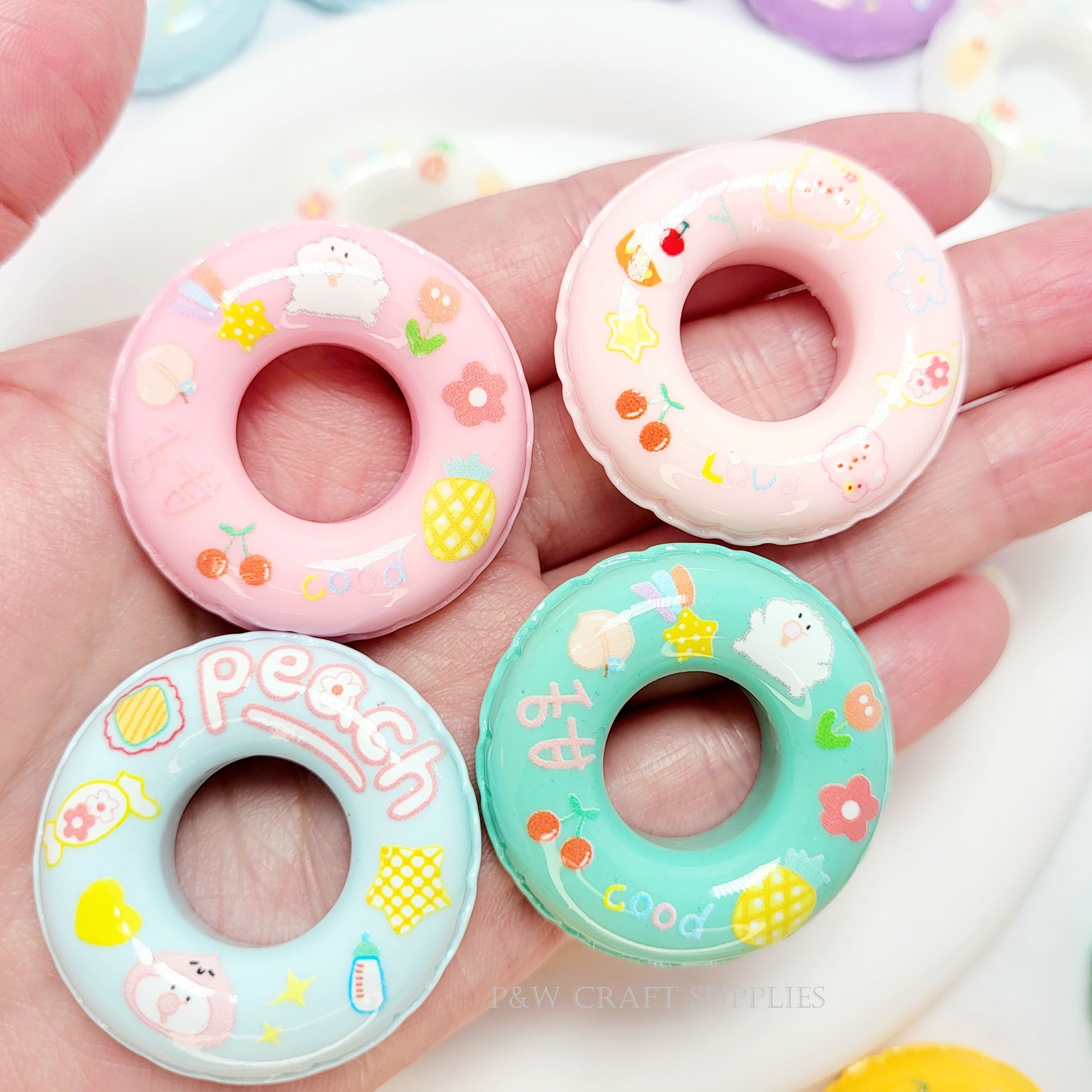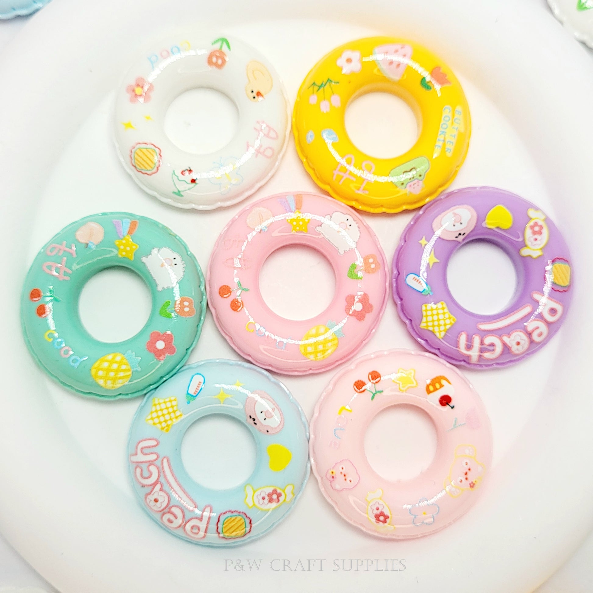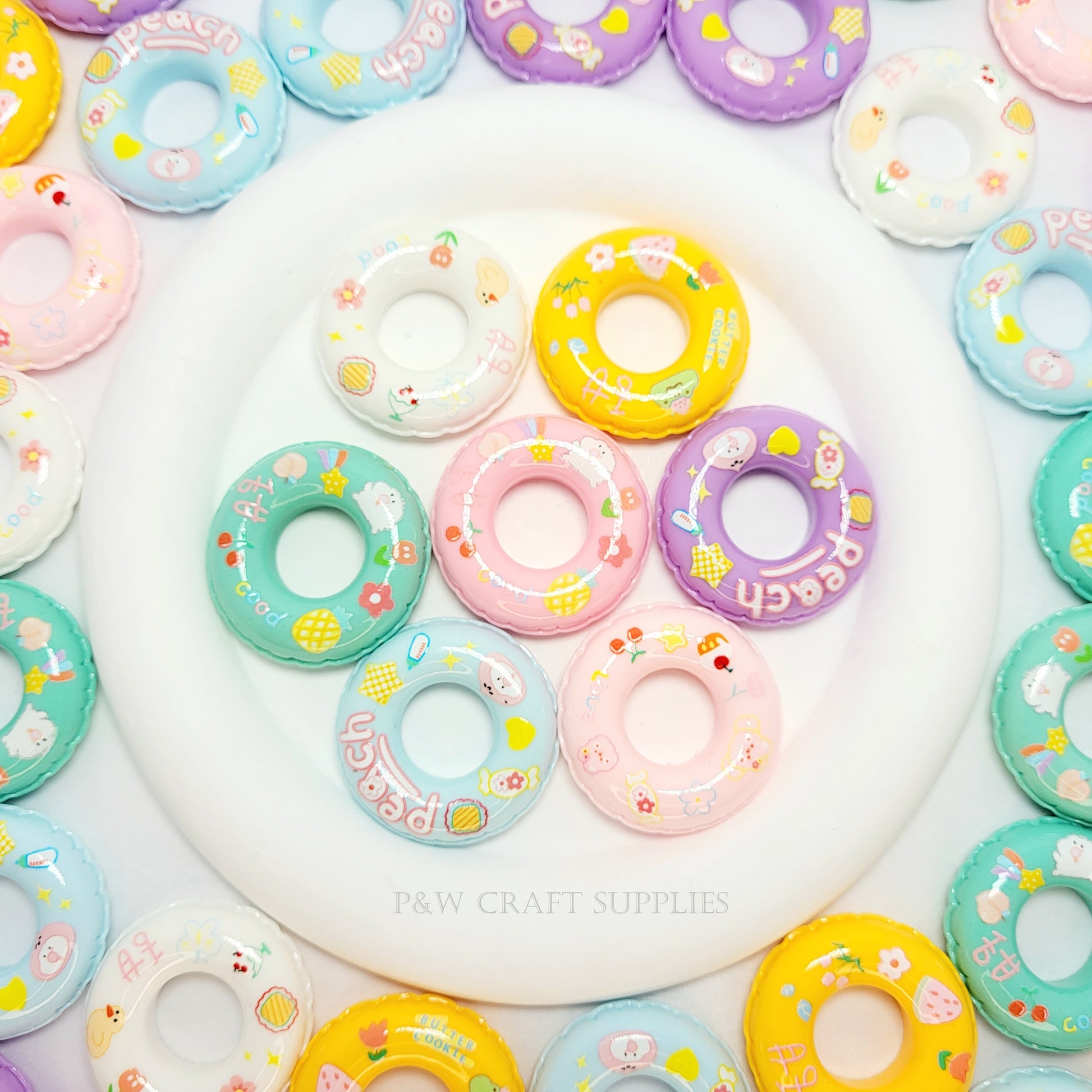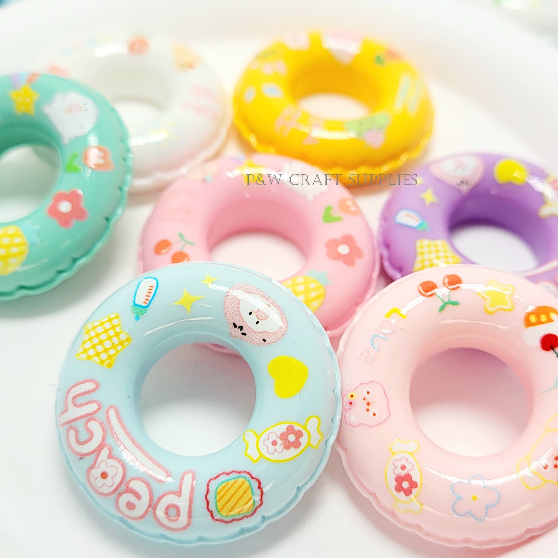 Bring a splash of summer fun to your crafts with these adorable Kawaii Floatie Decoden! Designed to look like miniature pool float rings, these charms feature bright pastel colors, cute patterns, and playful details like fruits, sweets, and tiny animals. Perfect for resin crafts, scrapbooking, and decoration!