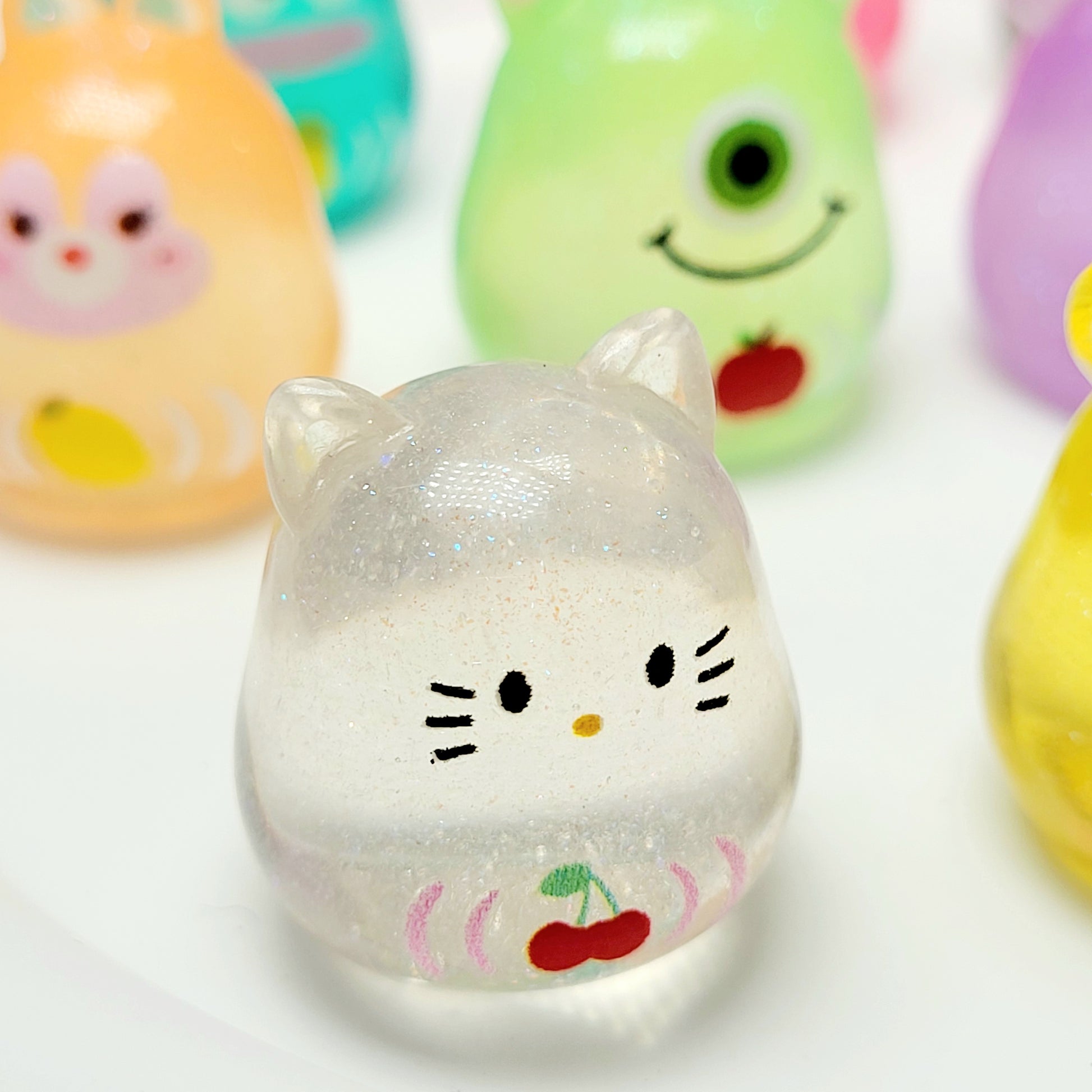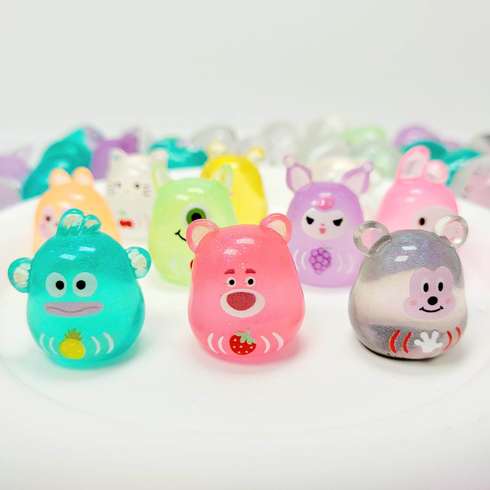 From cute animal faces to cheeky little monsters, every piece in this grab bag features a glossy 3D design holding a fruit like 🍓 strawberries, 🍎 apples, 🍍 pineapples, and more!