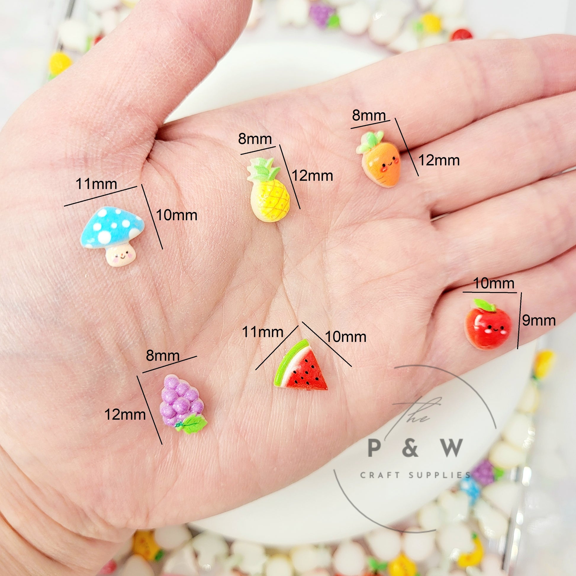 ✔️ Cute Assorted Fruit Shapes – Includes cherries, strawberries, apples, grapes, watermelons, pineapples, peaches, carrots, and mushrooms