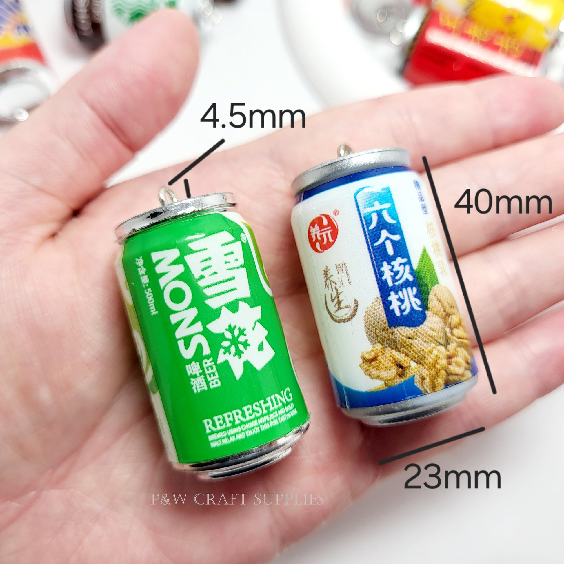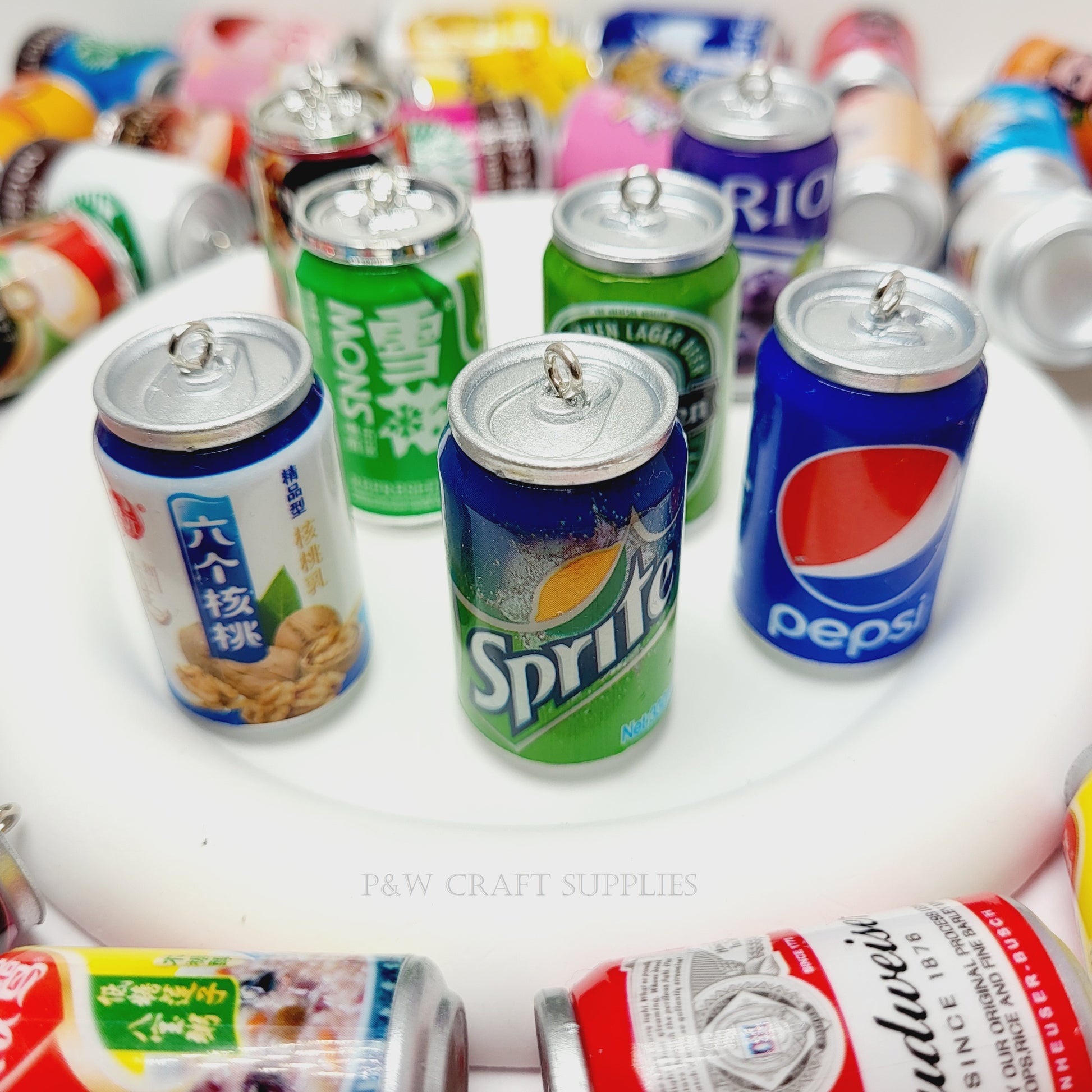 Add a fun and quirky touch to your crafts with these Miniature Soda Can Charms! Designed to mimic real beverage cans, these mini charms feature detailed printed labels, a realistic aluminum-like top and bottom, and a built-in hanging loop (4.5mm) for easy attachment to keychains, jewelry, or accessories. Measuring 40mm in height and 23mm in diameter, they are the perfect statement piece for creative projects!