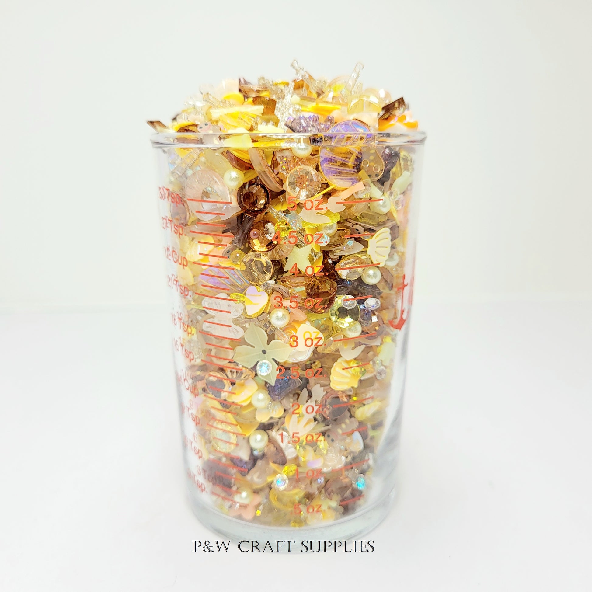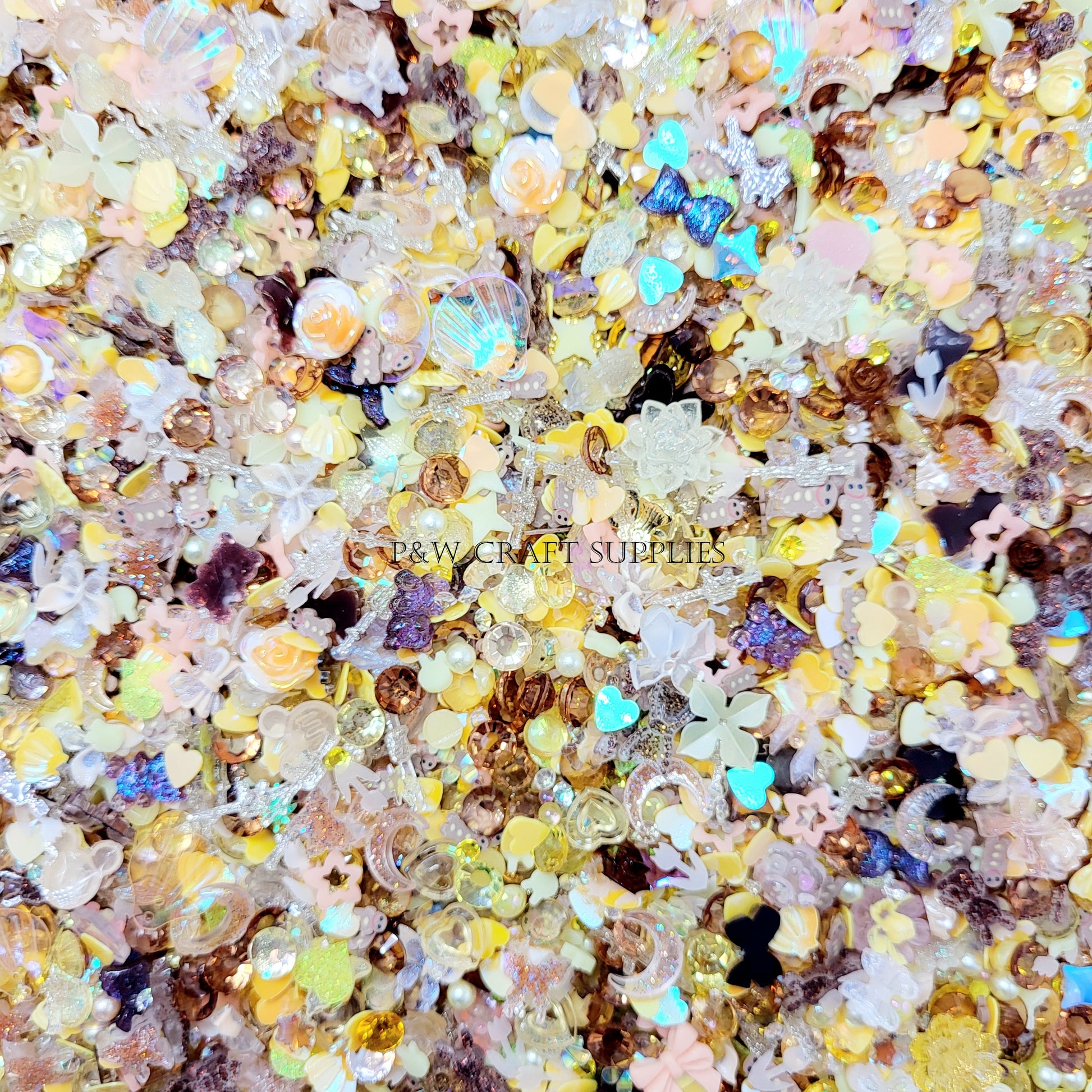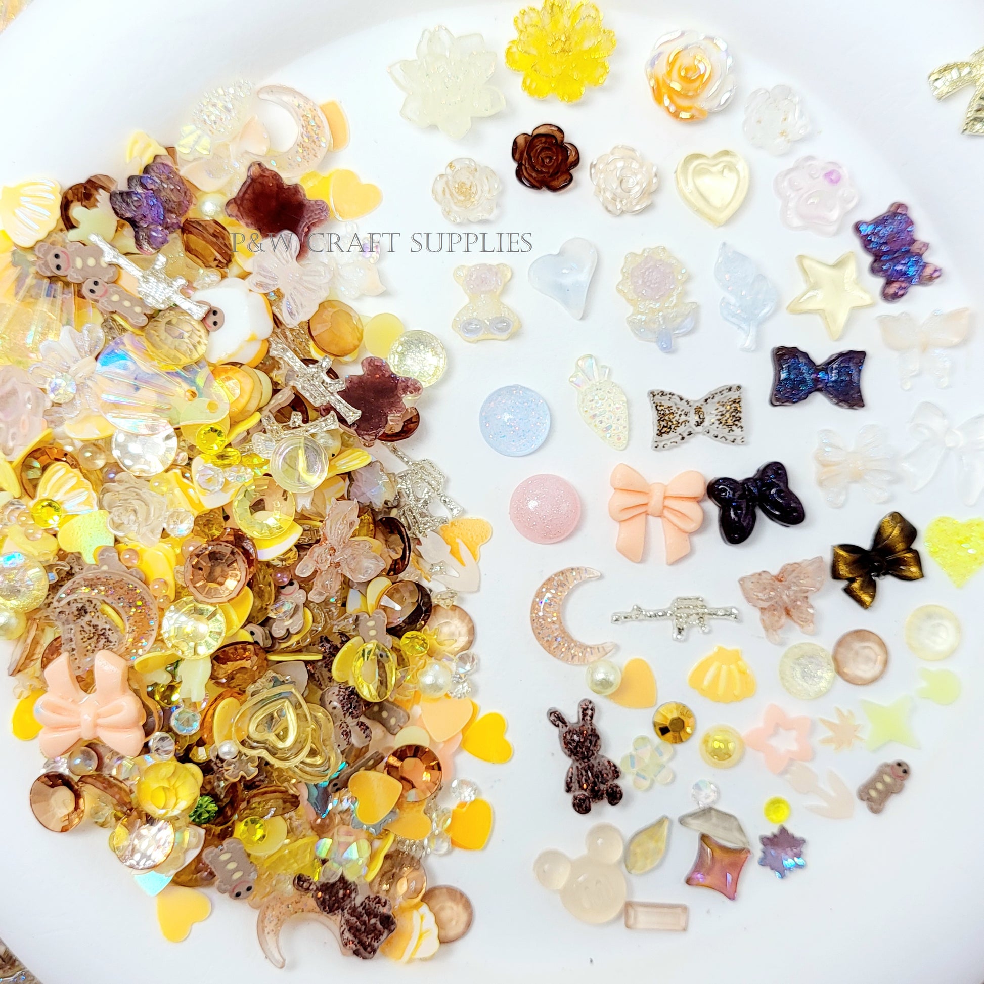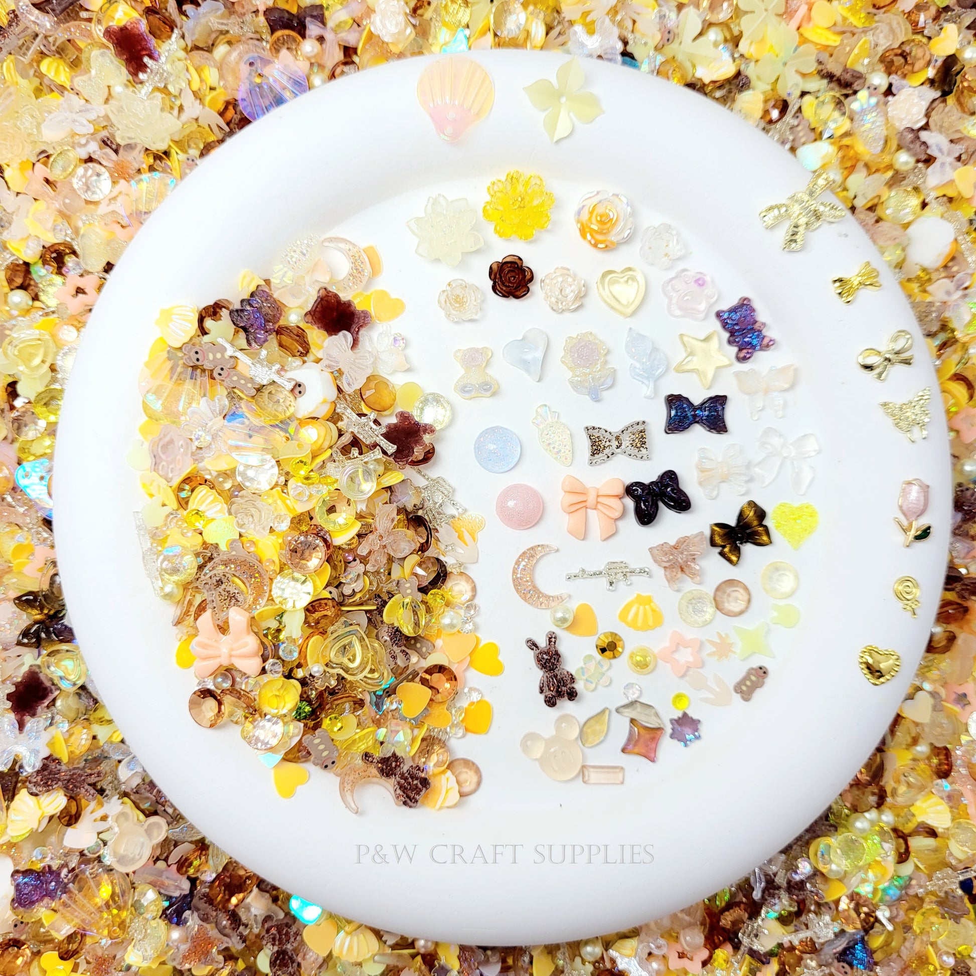 Embrace earthy elegance with the Brown Mystery Mix! This warm and cozy blend is inspired by golden sunsets, rich chocolate tones, and rustic charm. Filled with an enchanting mix of deep browns, soft caramels, golden hues, and iridescent neutrals, this collection brings a timeless and sophisticated touch to your crafts. Whether you're looking for glossy gems, delicate florals, shimmering bows, or celestial accents, this mix has a perfect balance of warm, rich tones and dreamy textures.