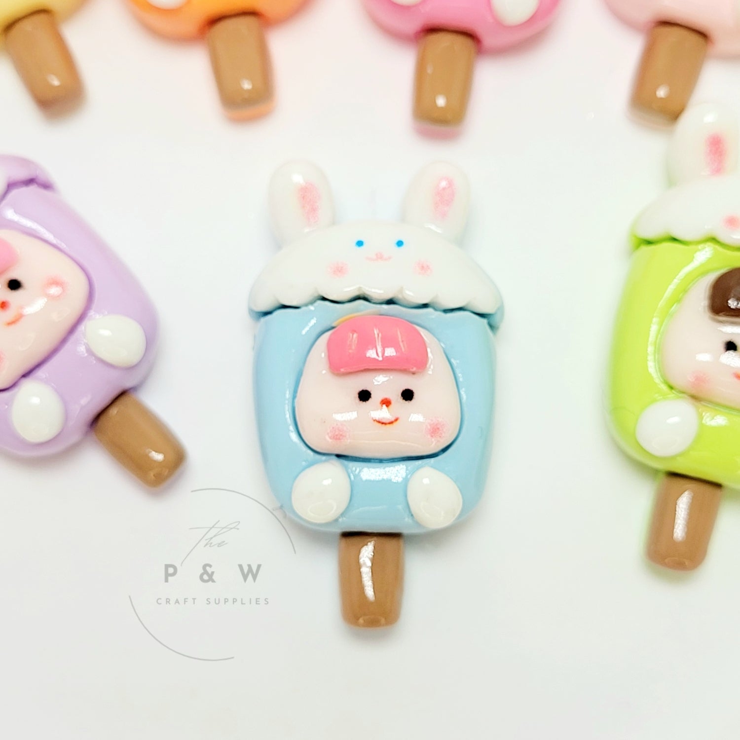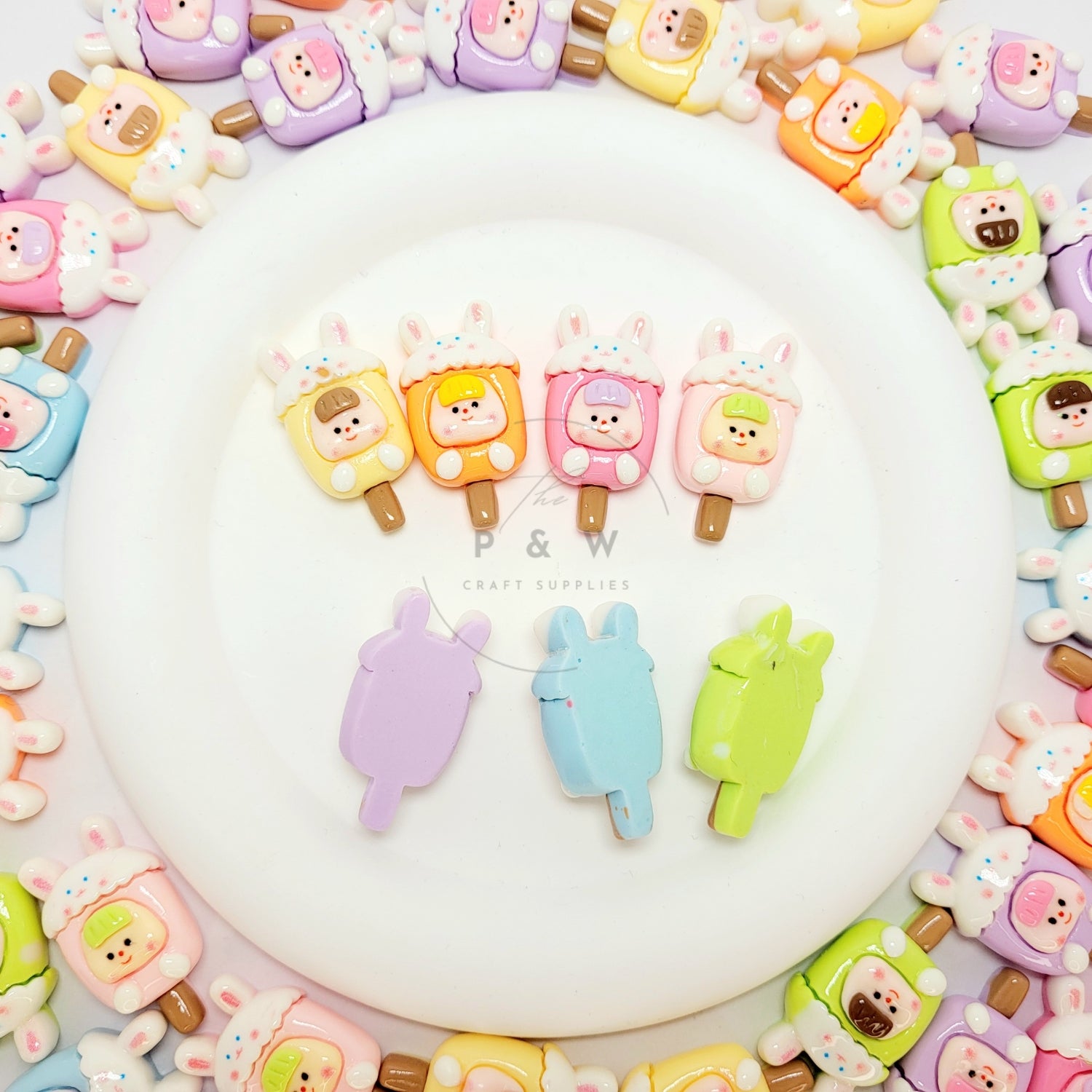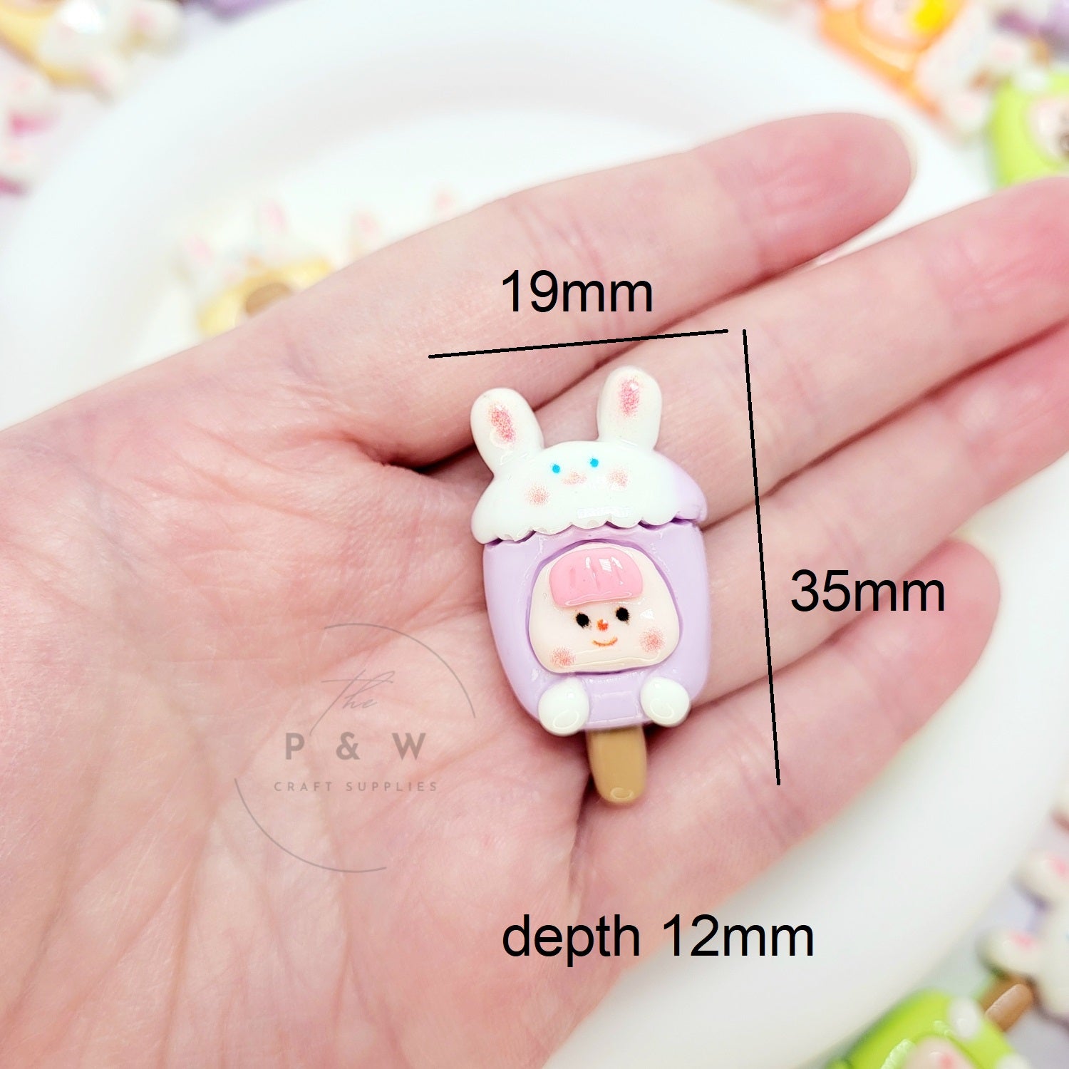 ✔️ 3D Flatback Design – Ultra-detailed popsicle charm with an adorable bunny hood