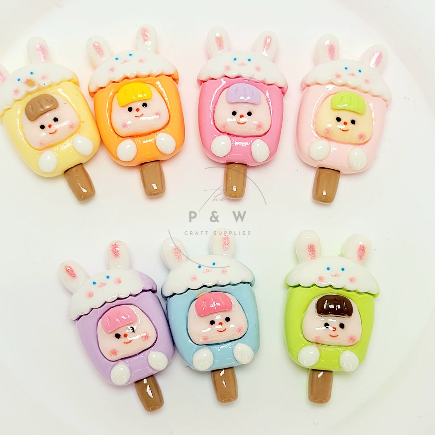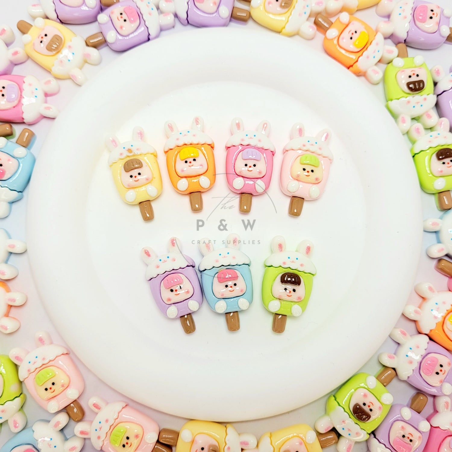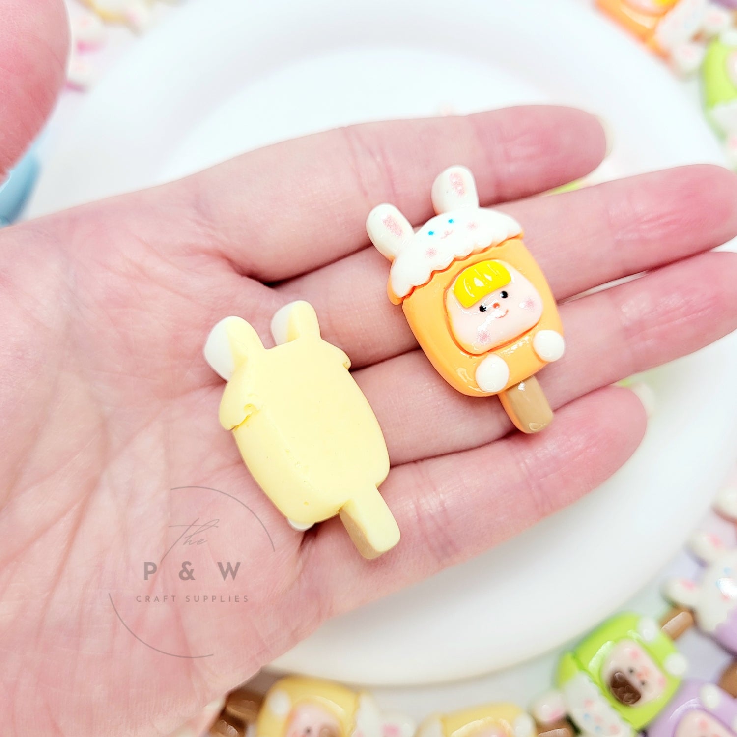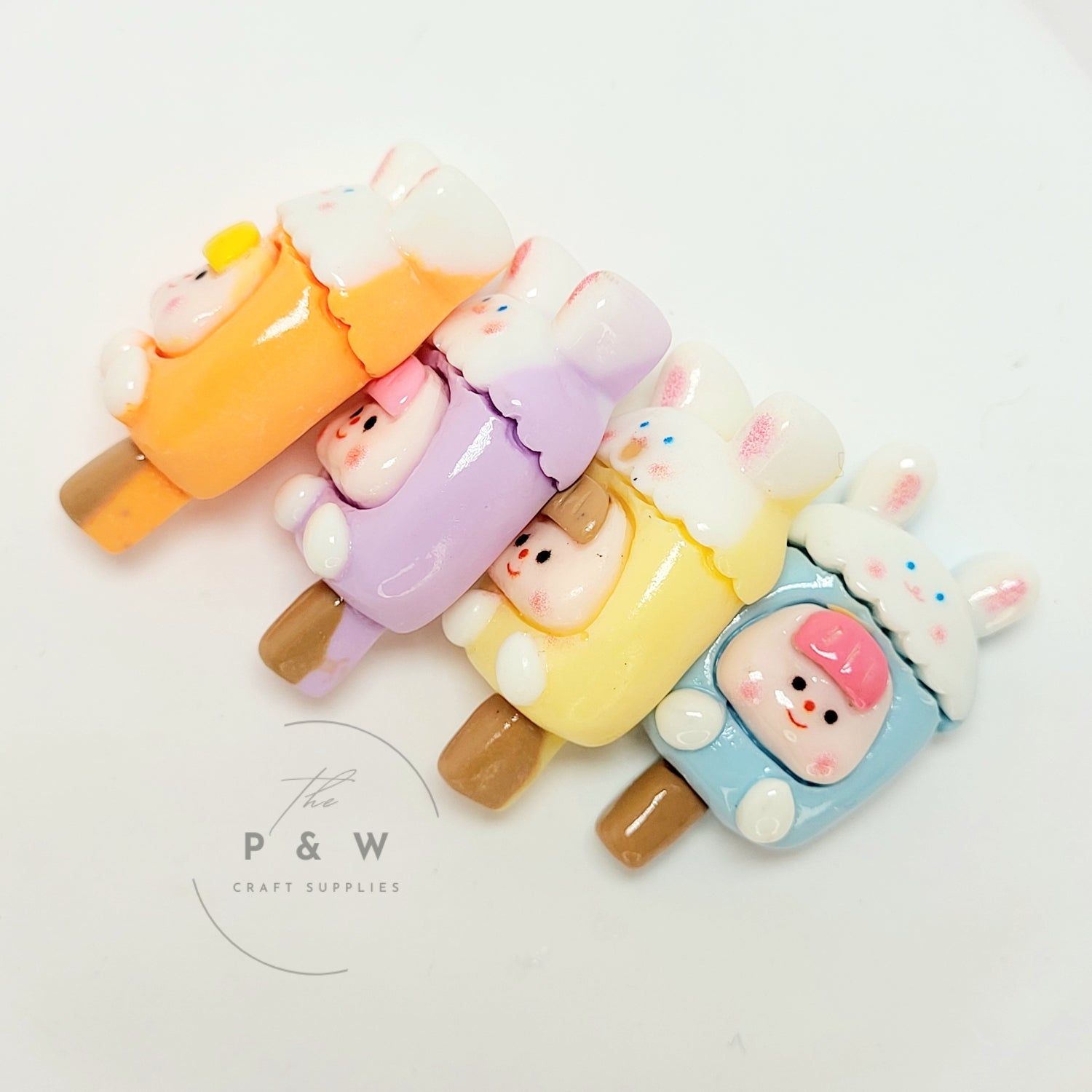 ✔️ 3D Flatback Design – Ultra-detailed popsicle charm with an adorable bunny hood
