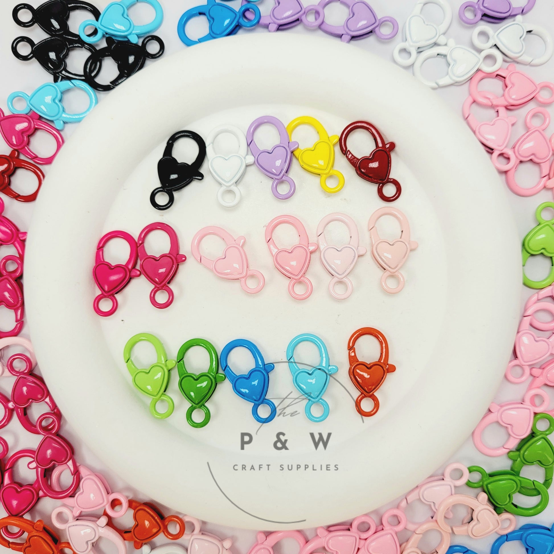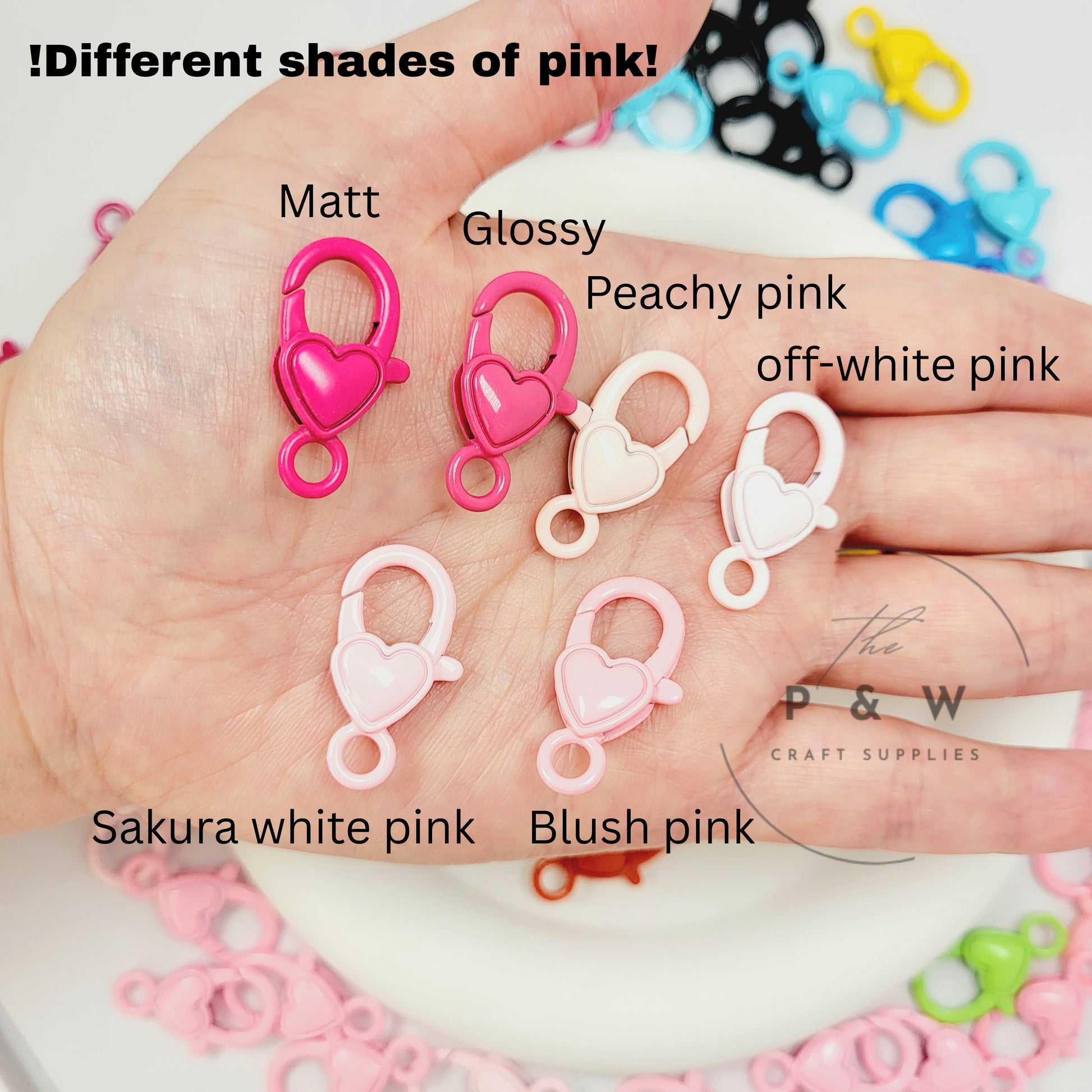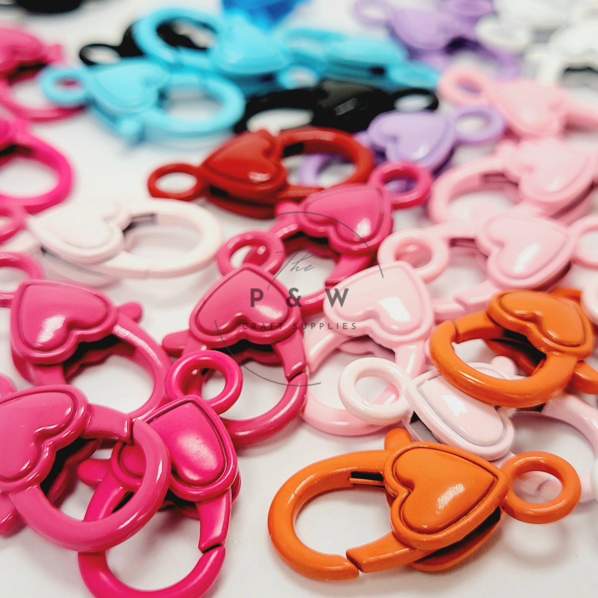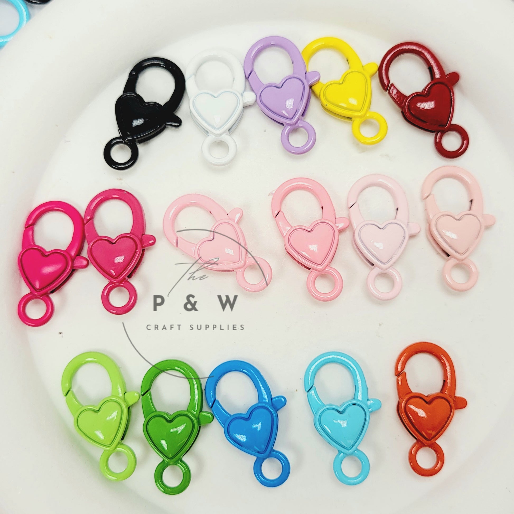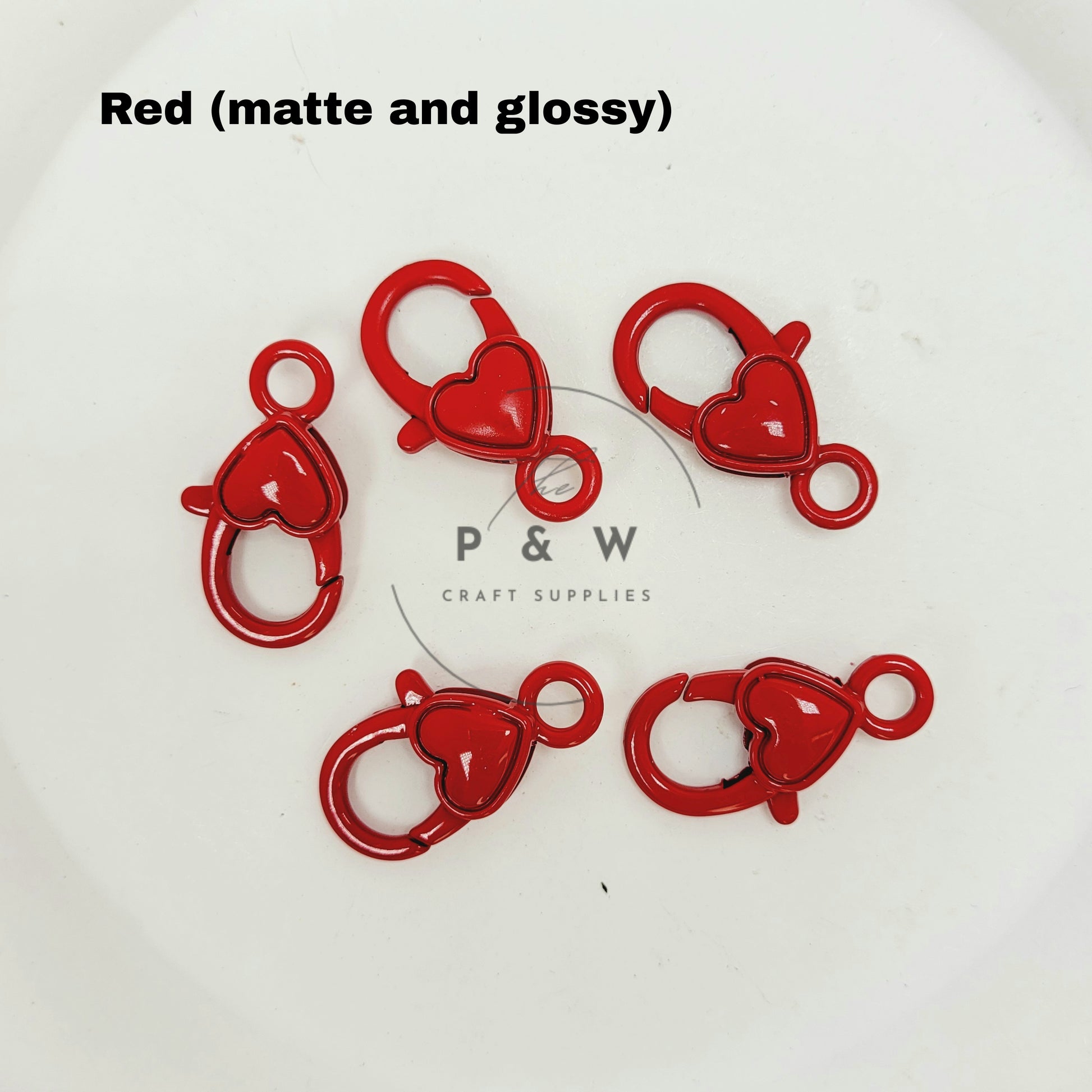 Perfect for keychains, jewelry, bag charms, and more, these clasps feature a cute heart detail, a smooth glossy finish, and a sturdy spring mechanism. With a built-in loop, they’re super easy to attach to any project while adding both function and charm.