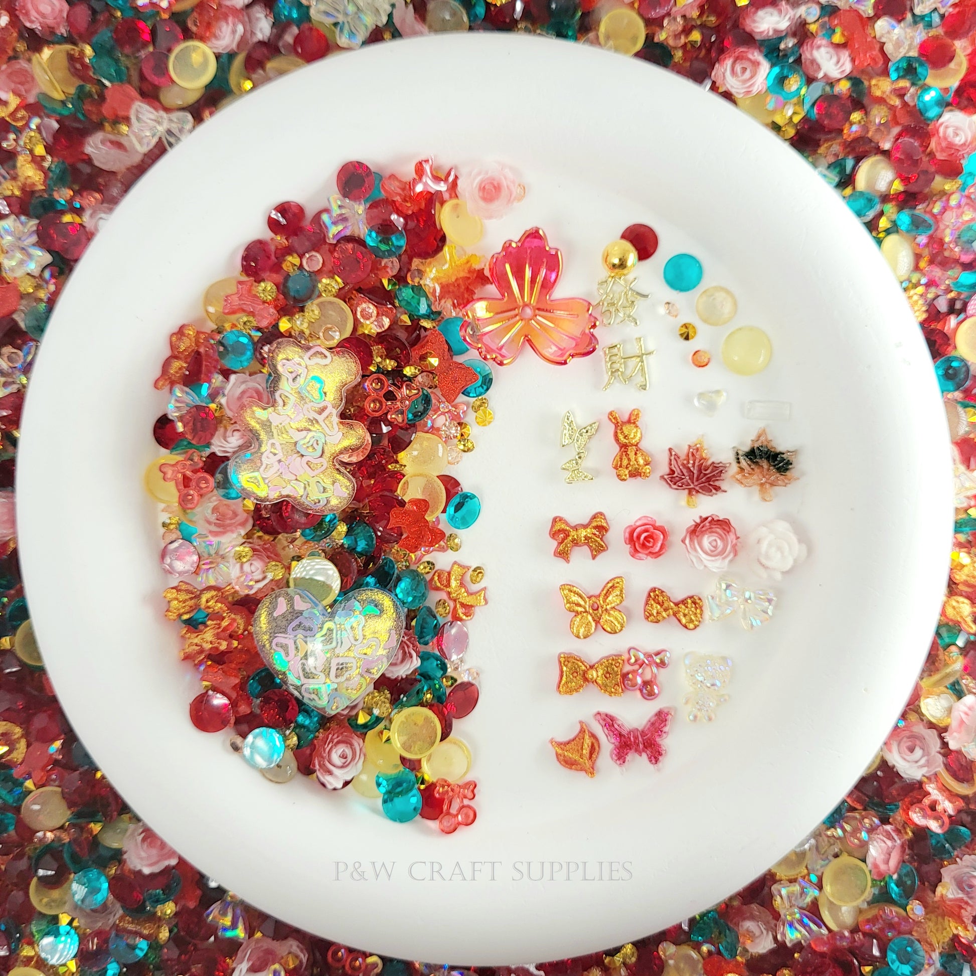 Step into a world of dazzling colors, rich textures, and mystical charm with the Indian Dream Mystery Mix! This luxurious mix is a stunning blend of fiery reds, shimmering golds, and mesmerizing teals, creating a perfect harmony of warmth and vibrancy. Designed to evoke the beauty of traditional Indian artistry, this set is filled with sequins, gemstones, floral embellishments, butterflies, and golden accents—making every creation feel like a treasure.