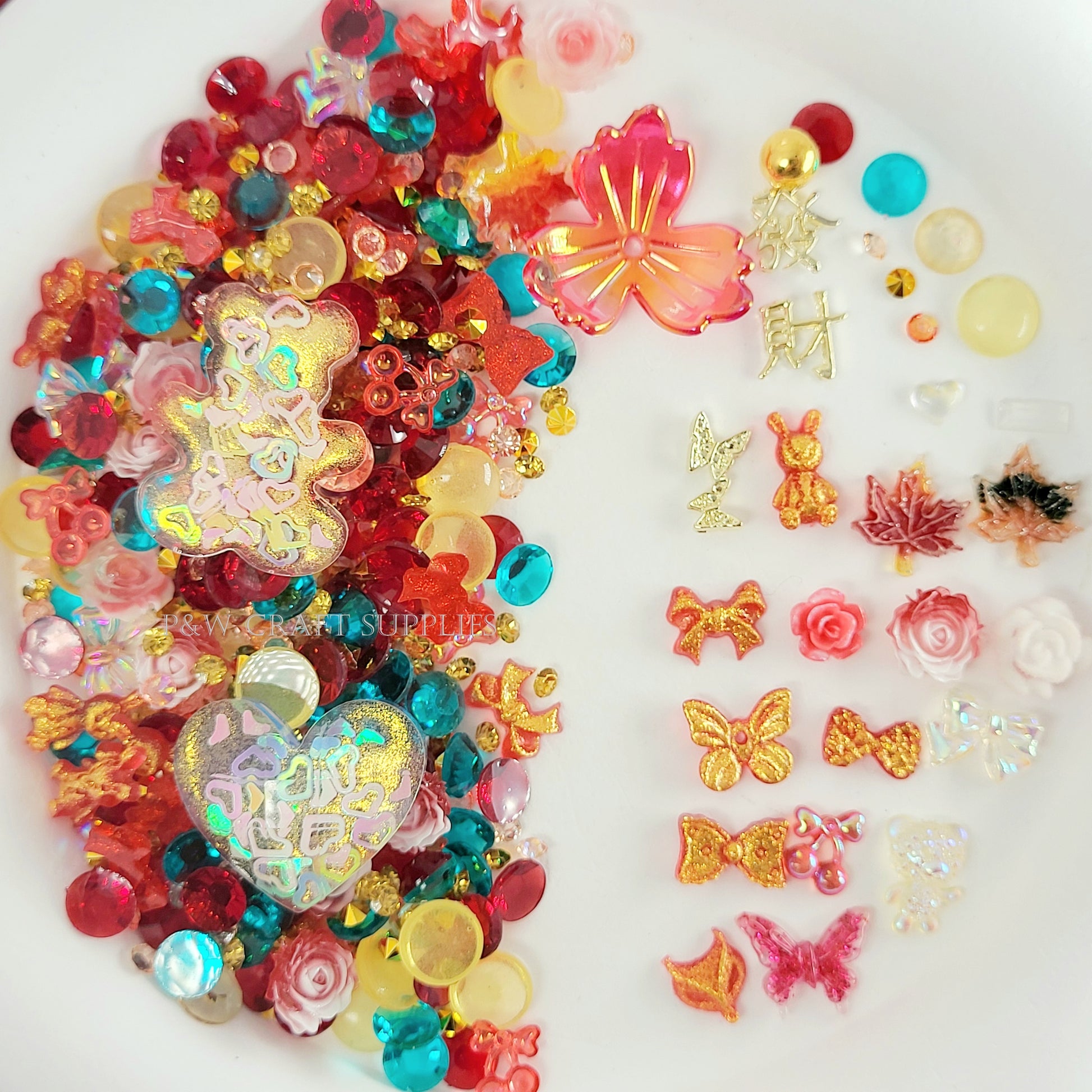 ✔ Diverse Textures & Elements – Includes butterflies, floral charms, sparkling gems, holographic pieces, and metallic accents