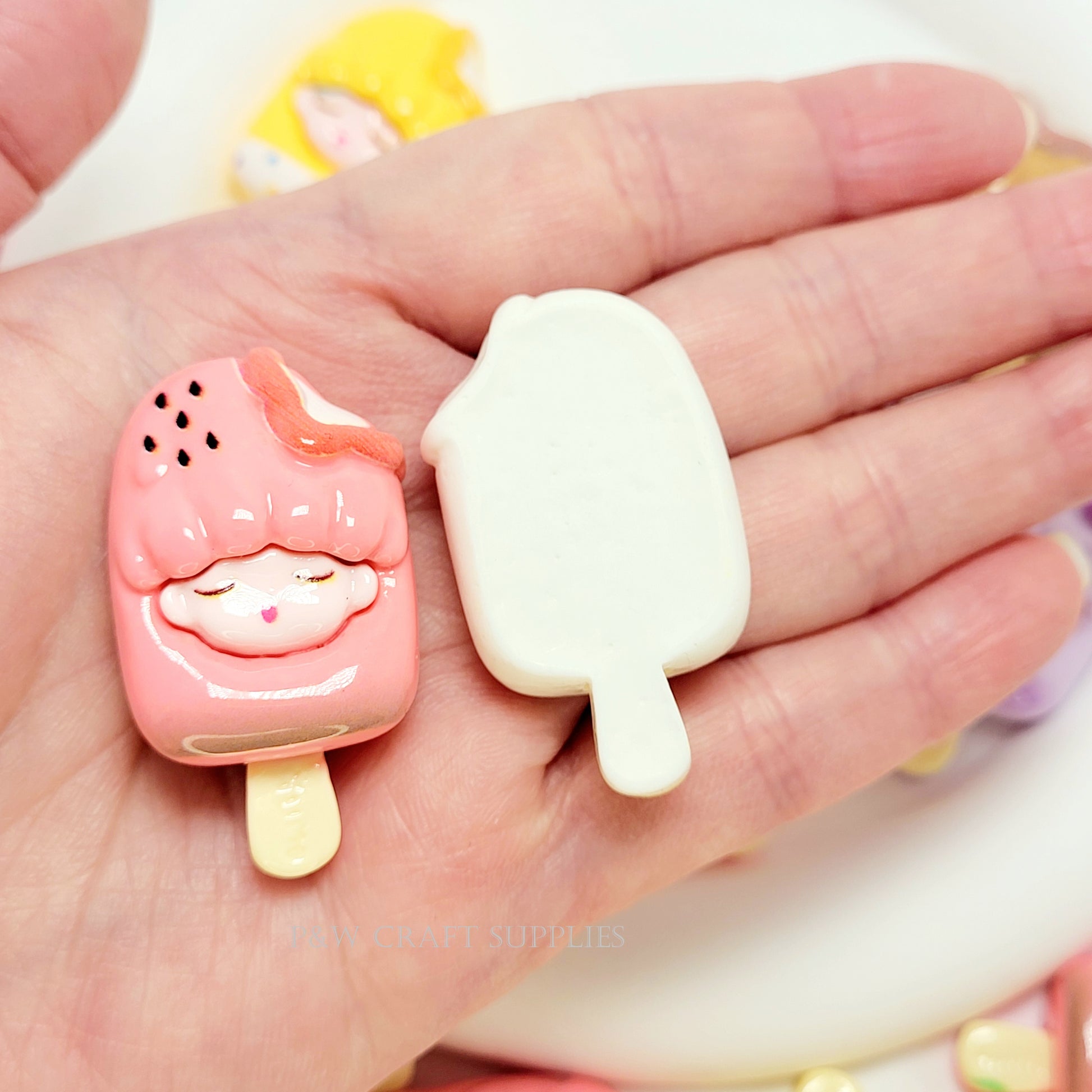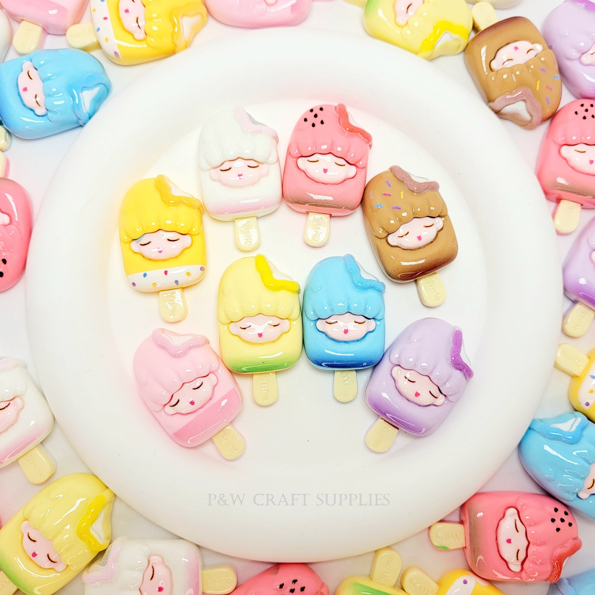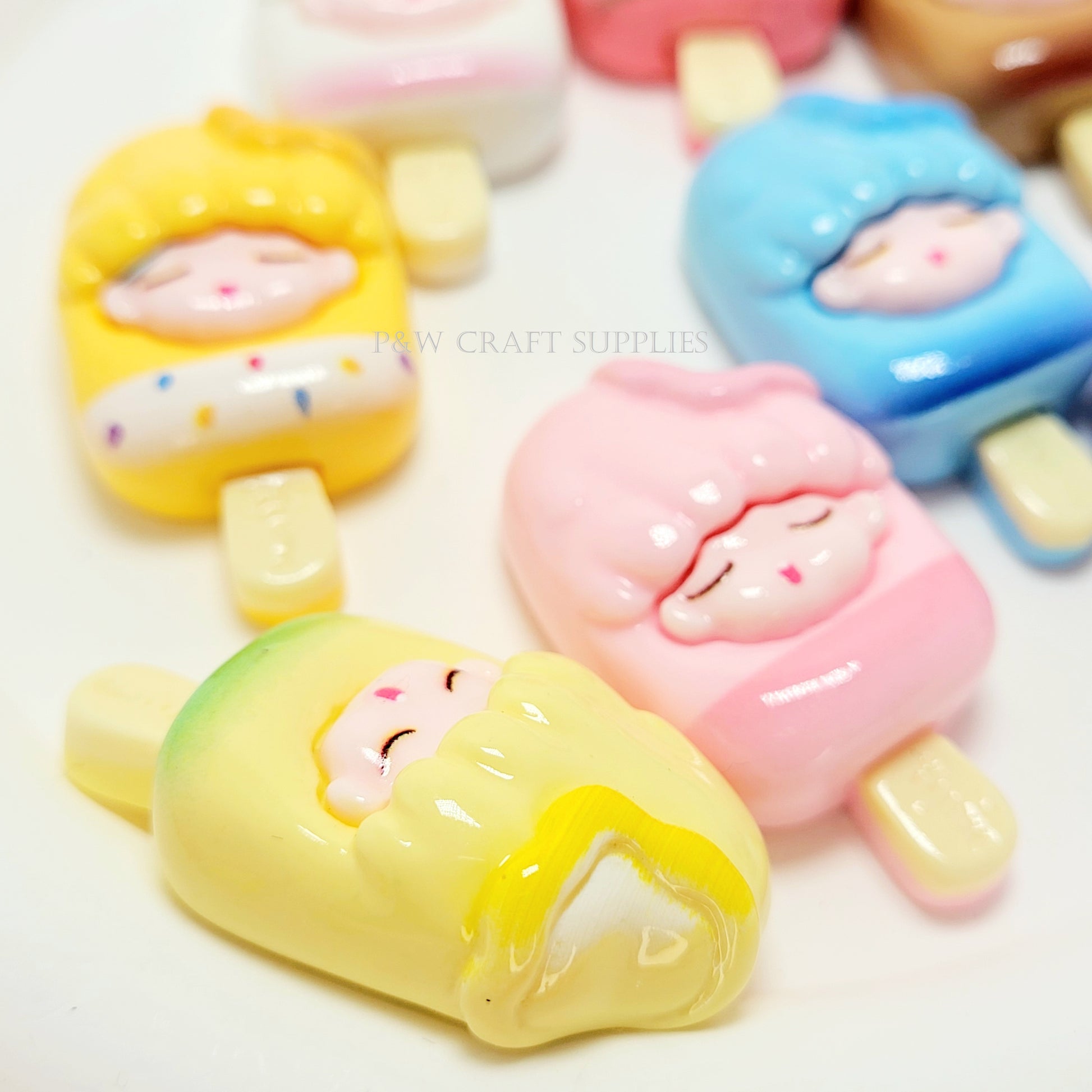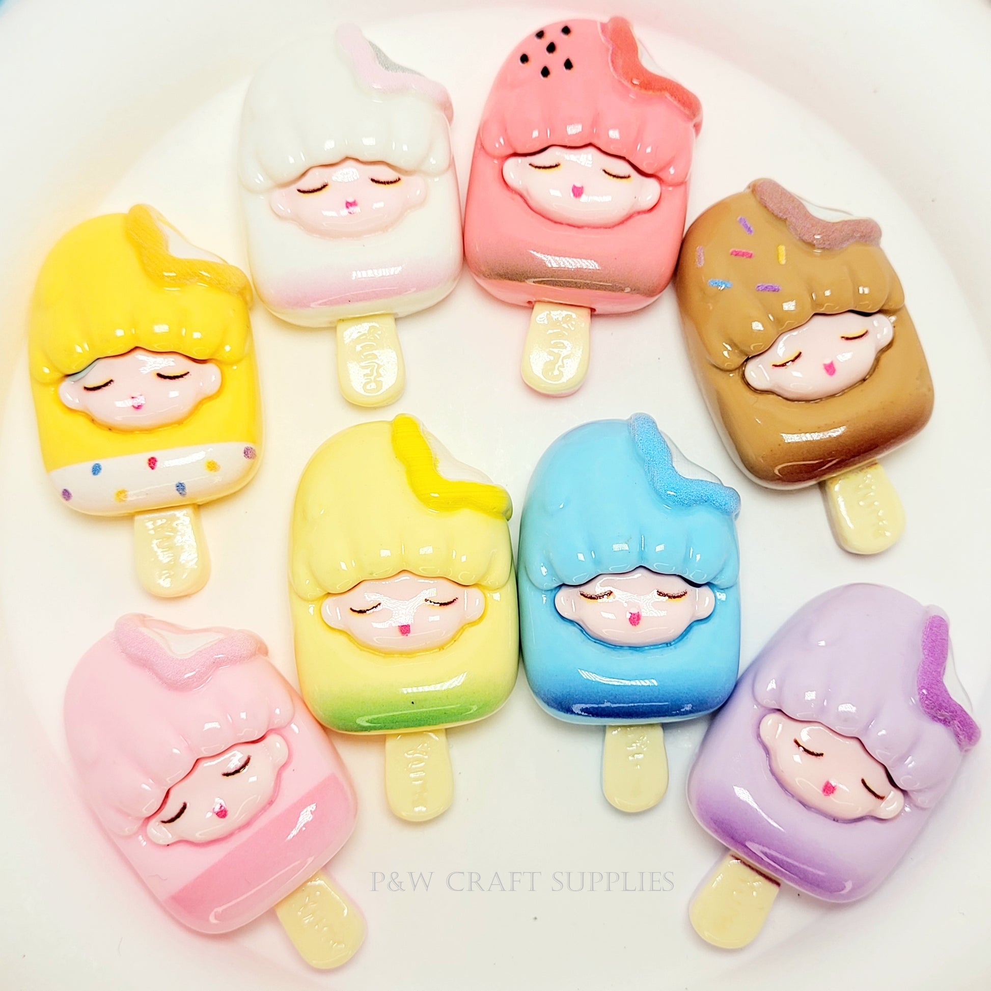 Indulge in the sweetest charm collection with these Ice Cream Girl Charms! Each charm features an adorable sleeping face nestled in a pastel ice cream bar, complete with fun details like sprinkles, fruit, and swirls. These unique charms bring a whimsical and kawaii touch to any craft project!