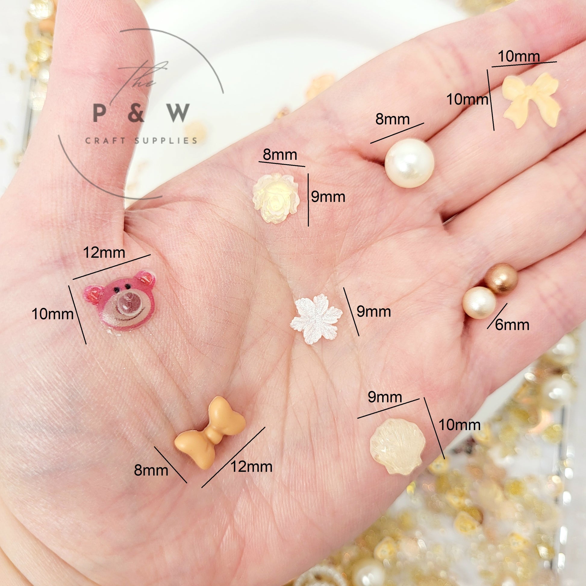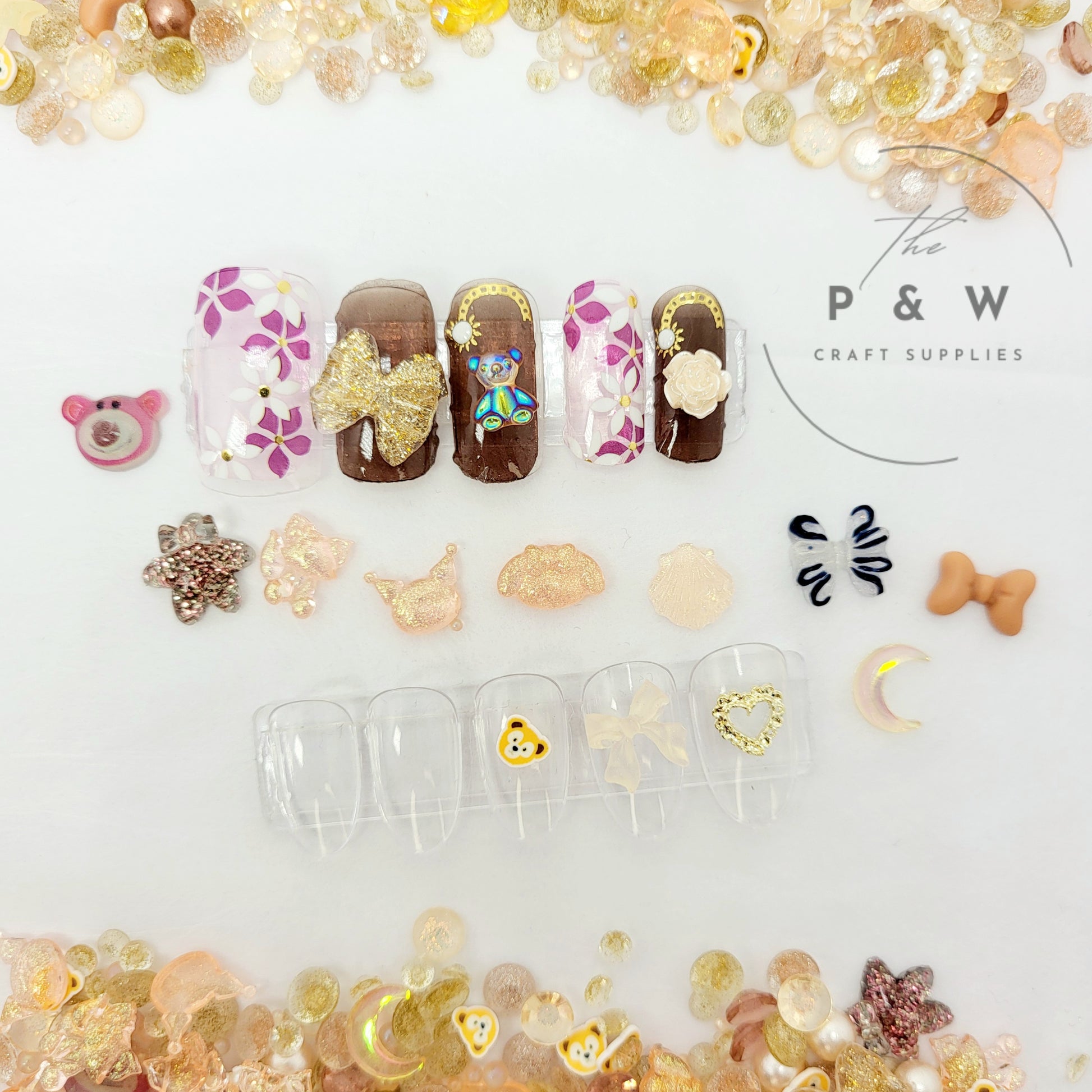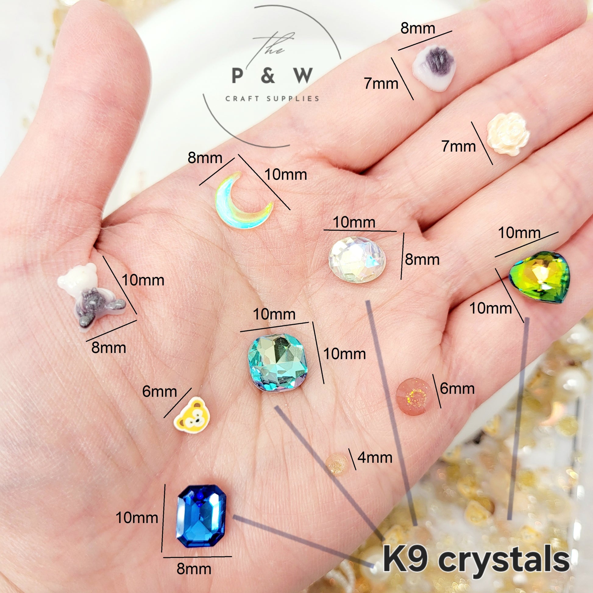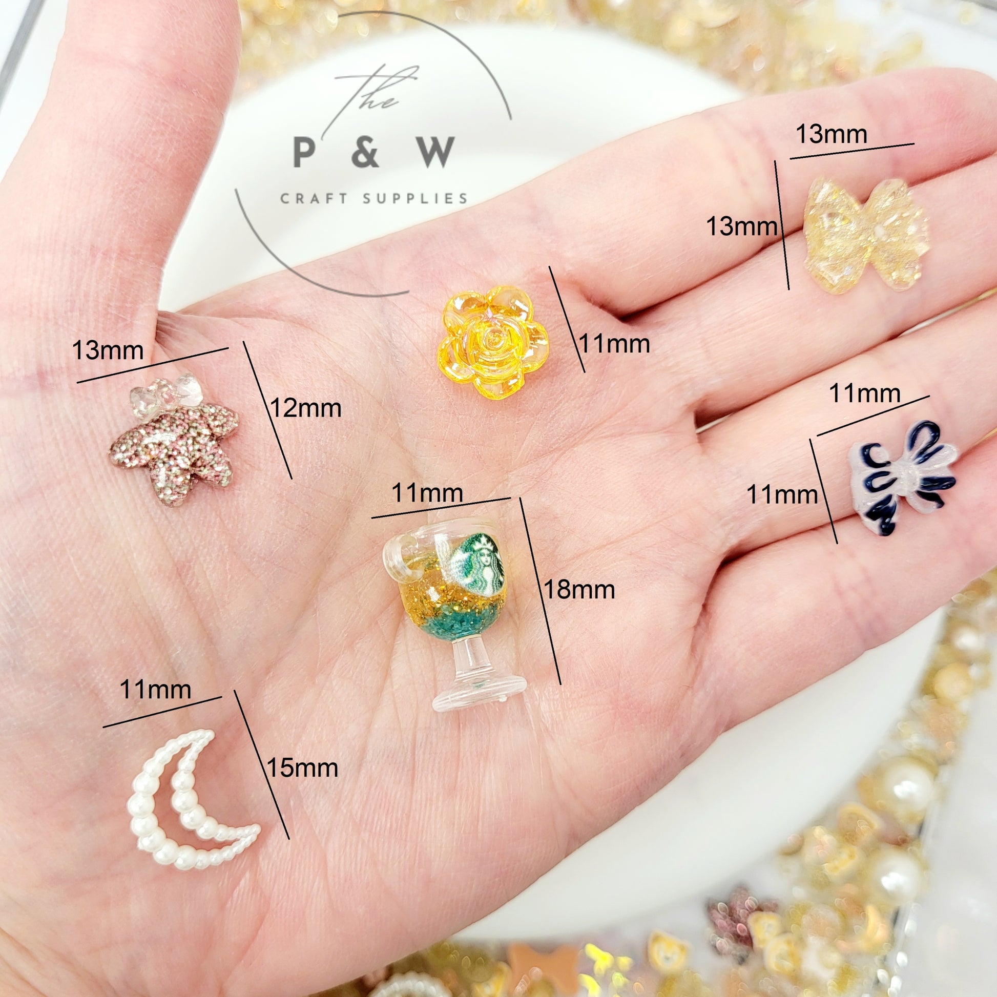 Glittery Resin Accents β Crescent moons, stars, and teddy bears with a glowing shimmer.