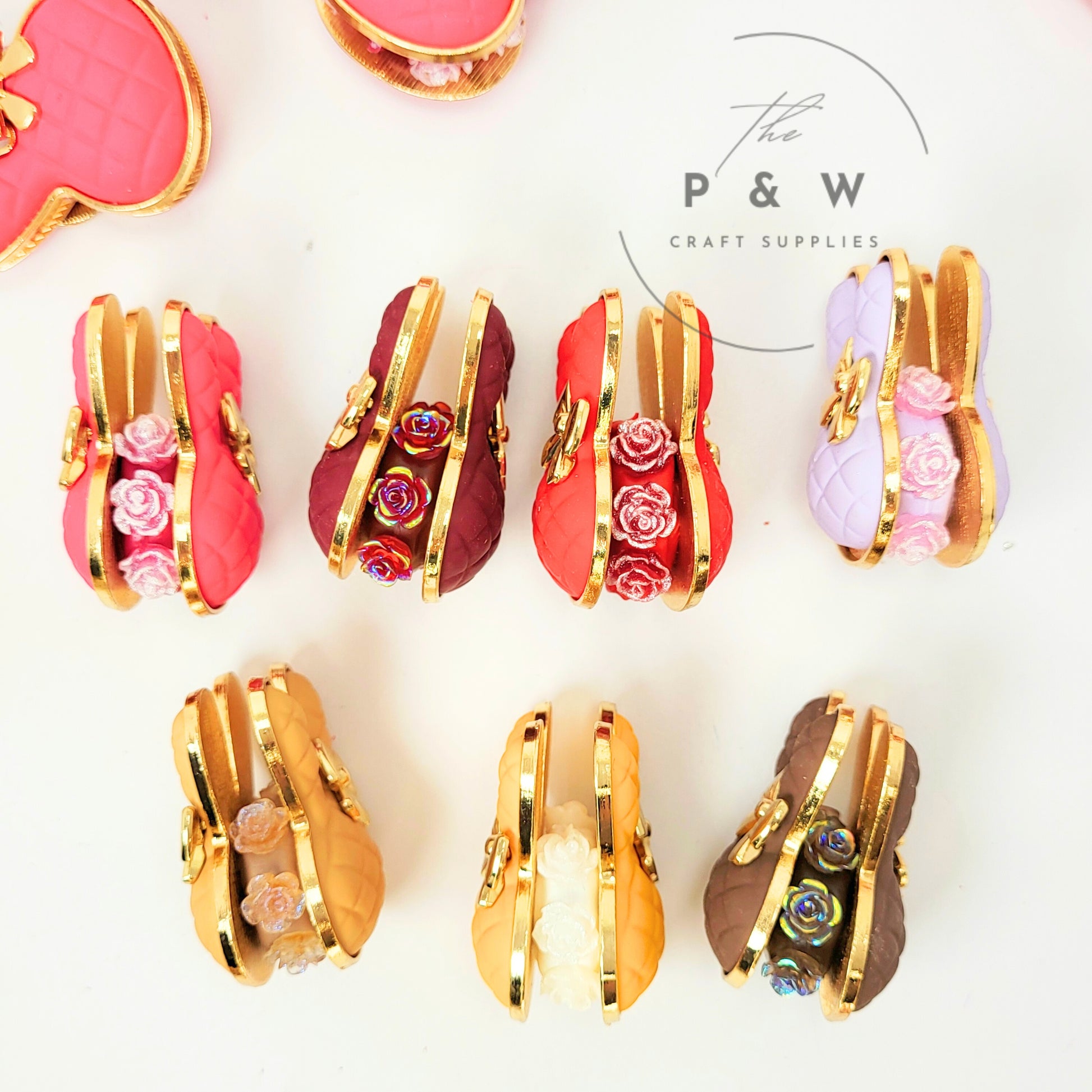 Adorable bunny-shaped embellishment beads designed with a quilted texture and accented with a golden bow. Each bead is decorated with miniature nail flowers on the sides, adding a delicate and playful detail. Available in 7 vibrant colors (red, pink, yellow, purple, beige, brown, wine), these beads are perfect for jewelry making, keychains, and decorative crafts.