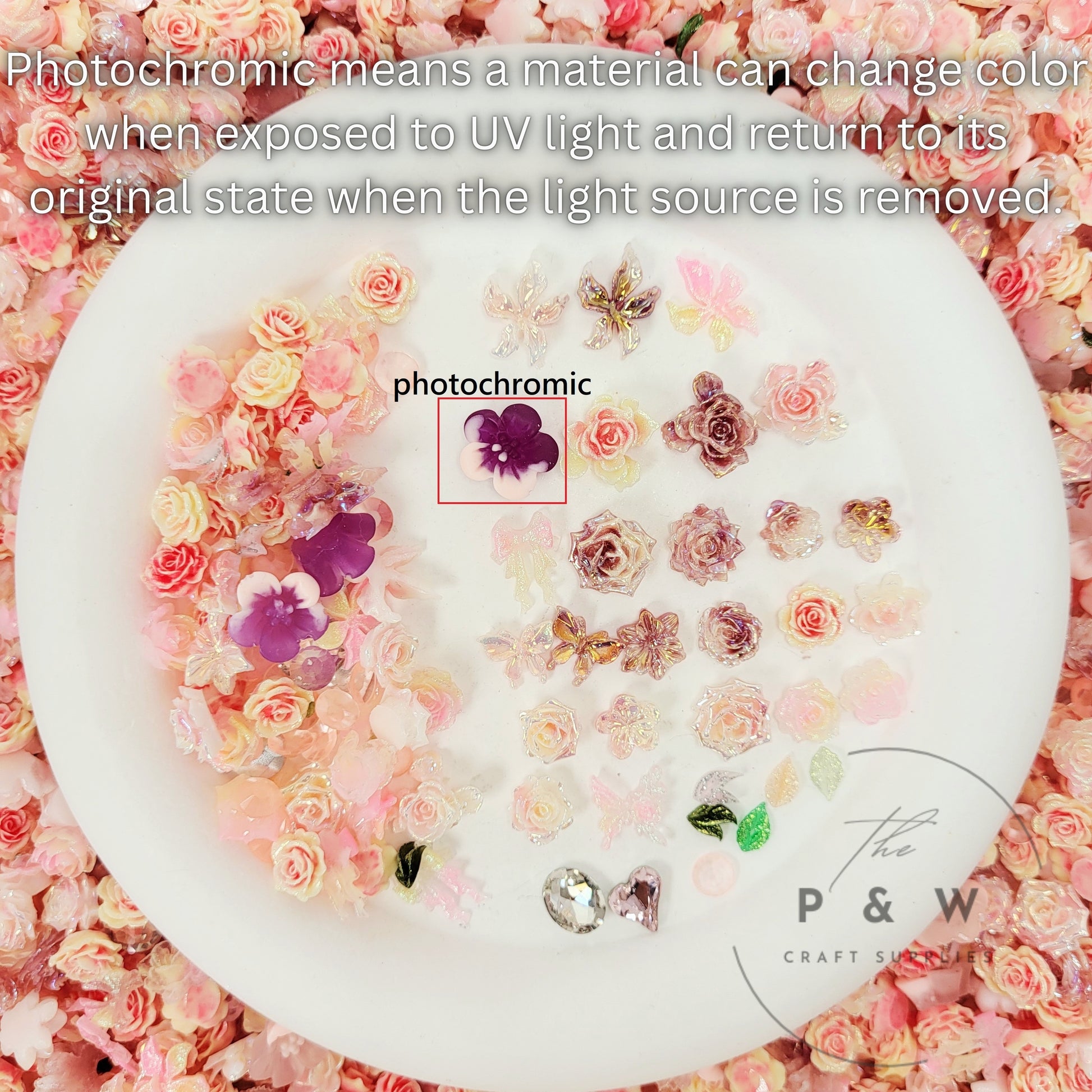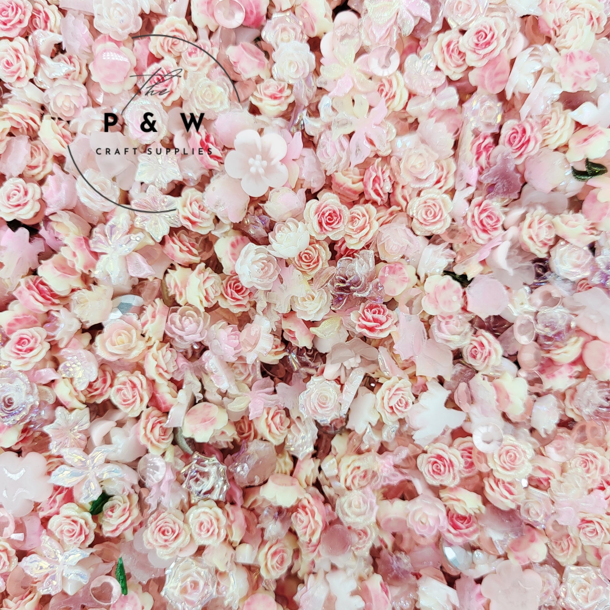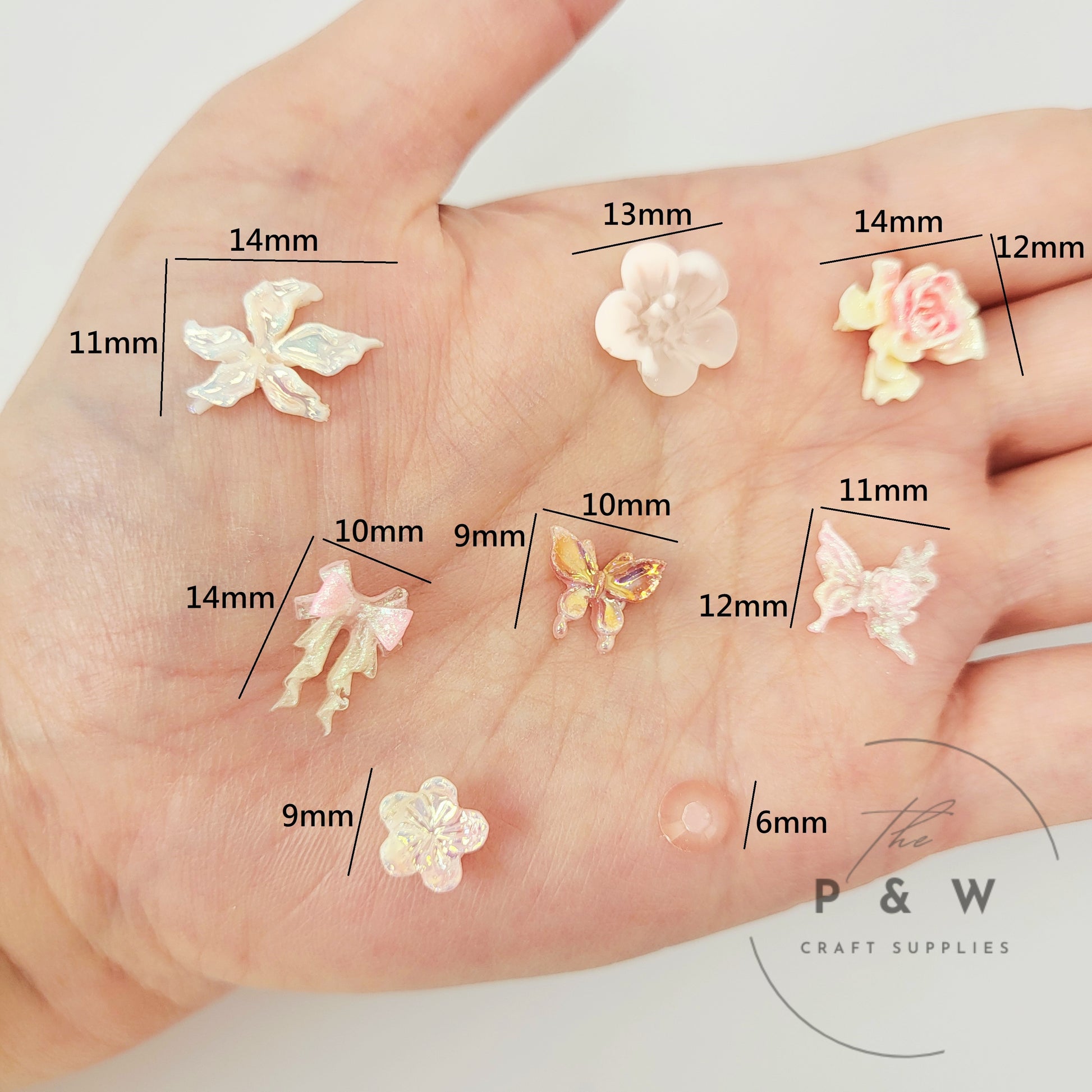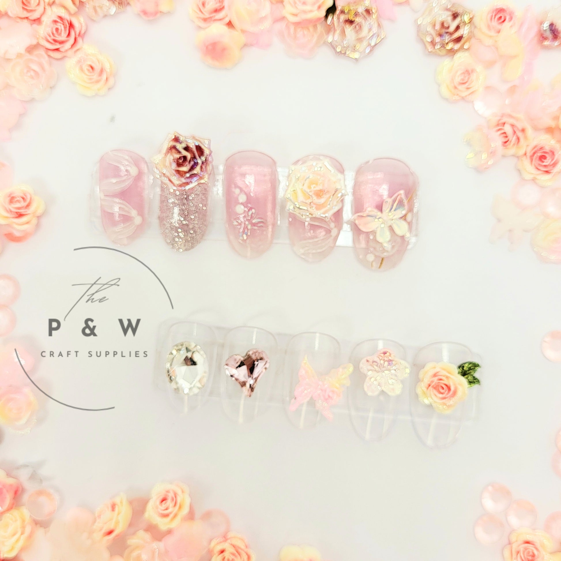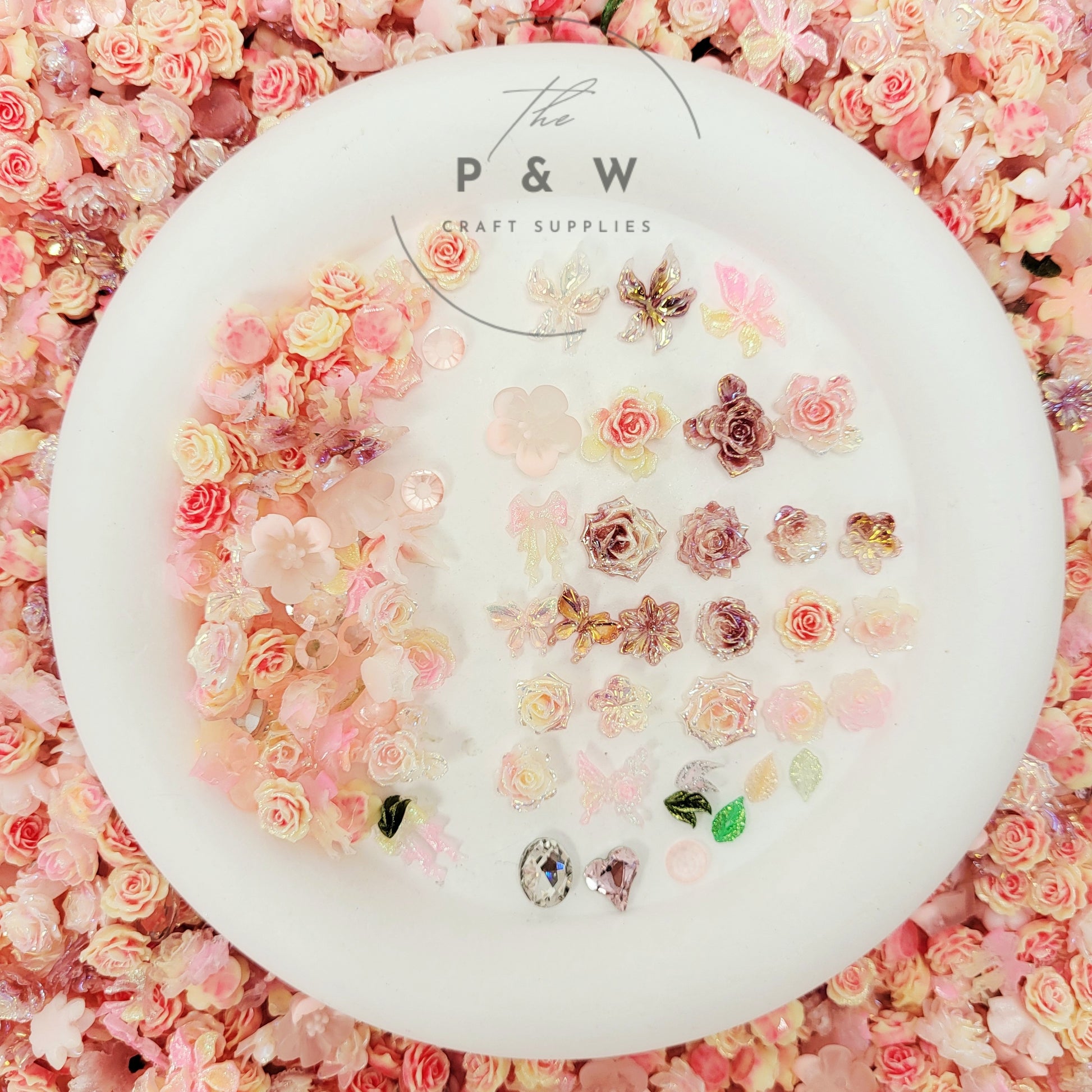Enter a garden of romance with the Blush Garden Nail Mystery Mix. This soft and dreamy assortment features sculpted roses, blossoms, butterflies, bows, pearls, and shimmering K9 crystals. With pastel tones, iridescent finishes, and photochromic flowers that magically change color in sunlight, this mix brings both elegance and playful surprise to your creations. Perfect for adding a touch of floral fantasy to your nail art or DIY crafts.