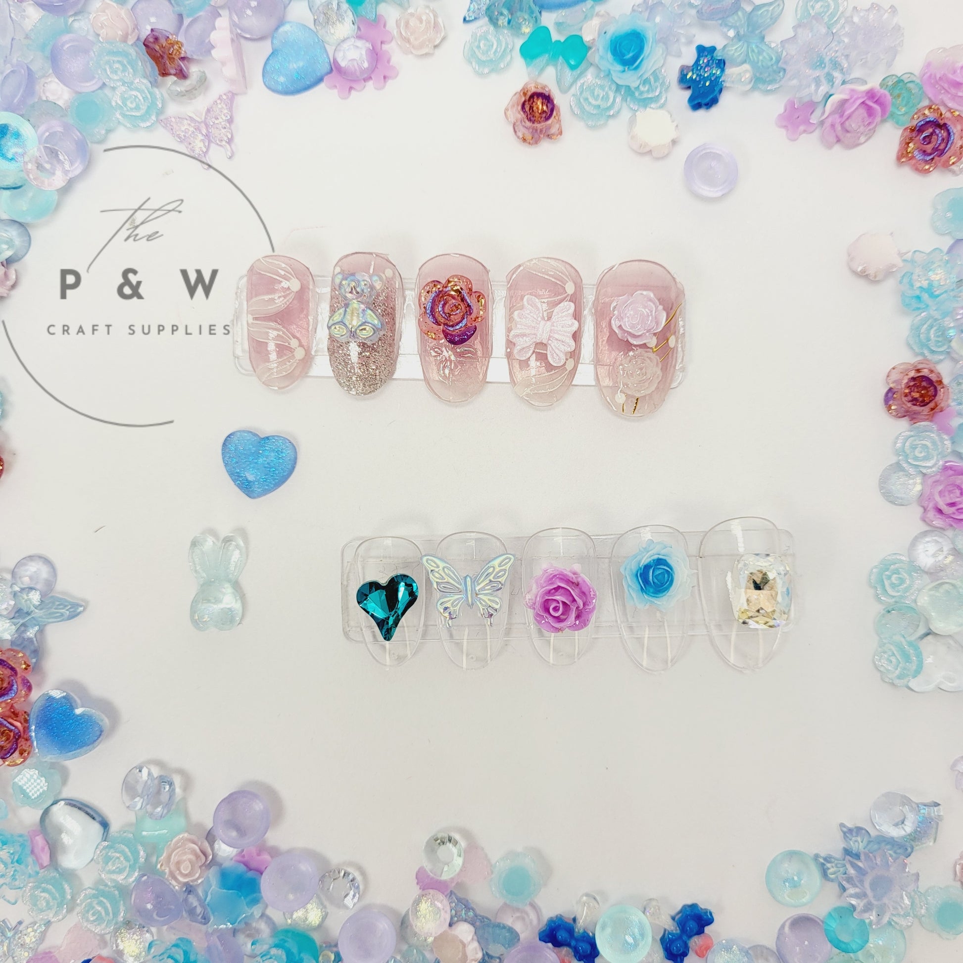 Dive into a serene world of elegance with the Blue Dream Nail Mystery Mix. This enchanting assortment features shimmering crystals, dreamy bows, pastel florals, butterflies, hearts, and playful resin charms. From iridescent glow to glittery finishes, each piece captures the magic of ocean skies and sparkling moonlight.