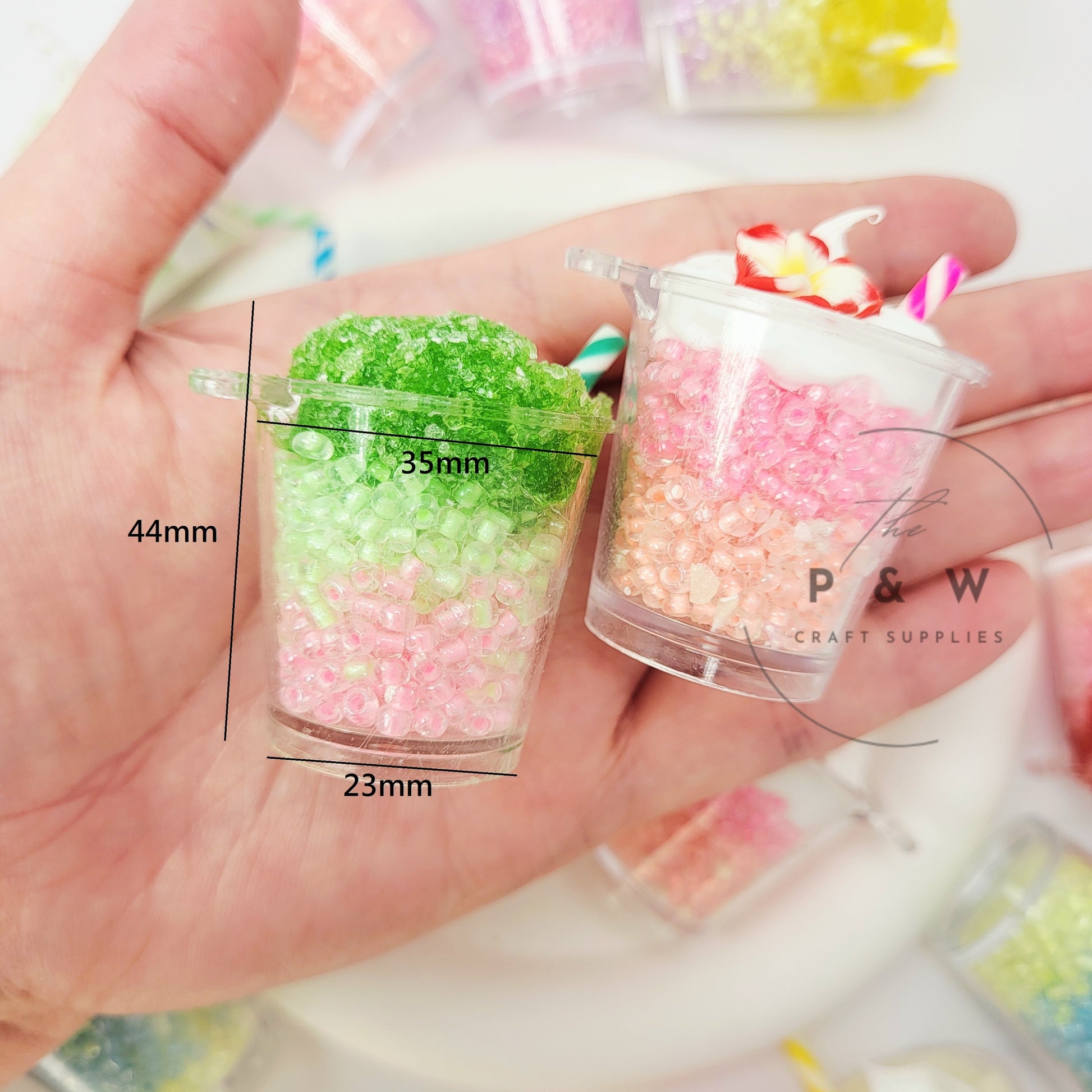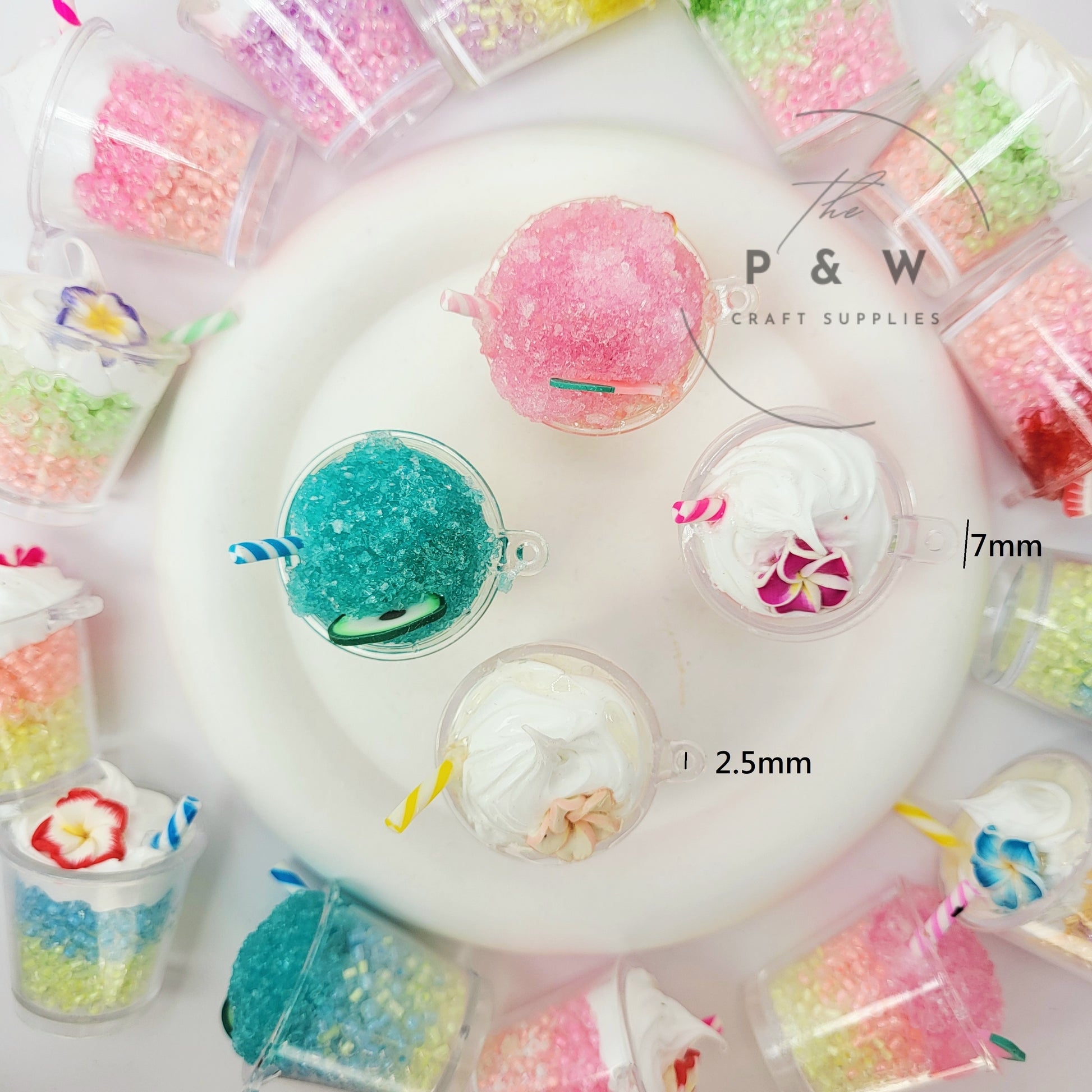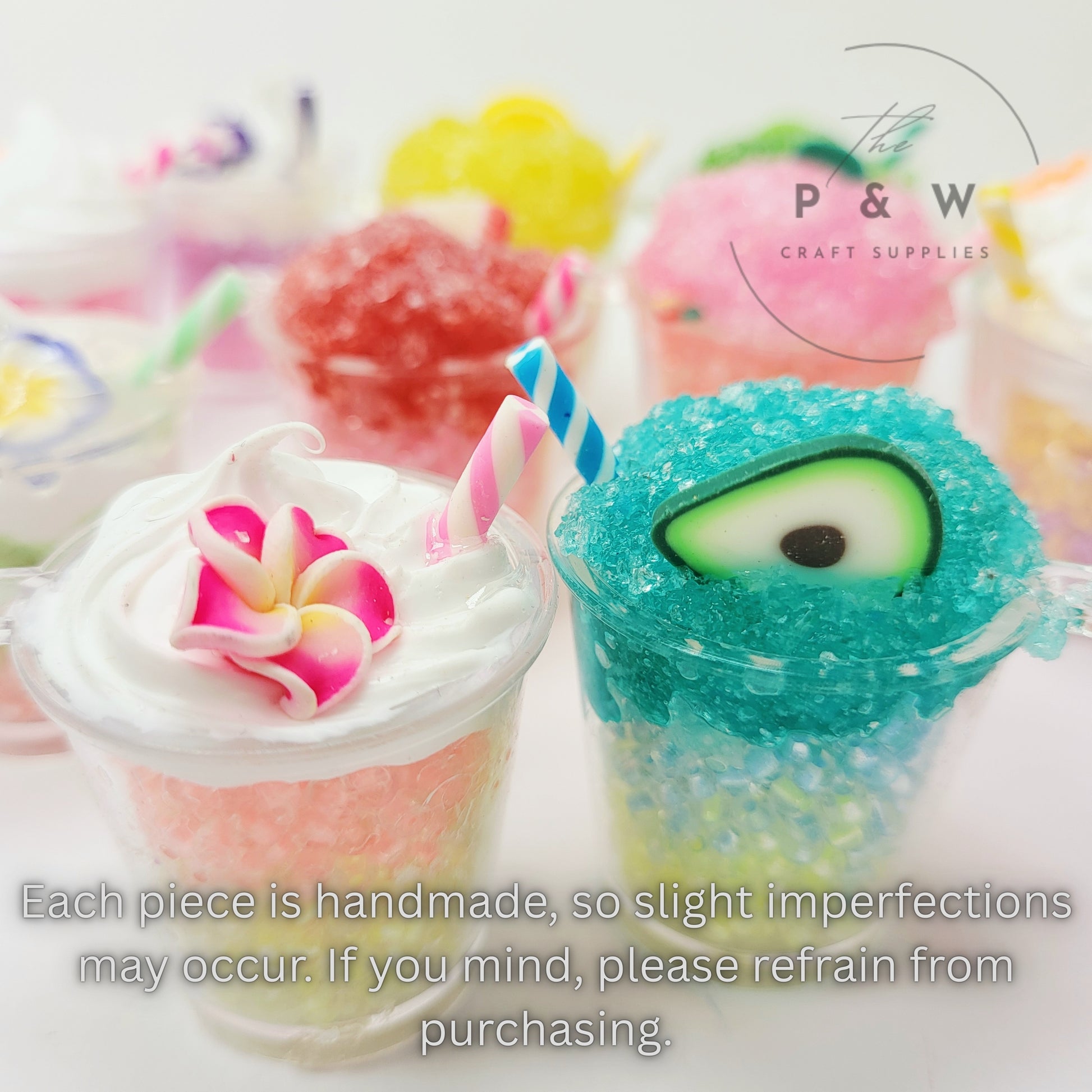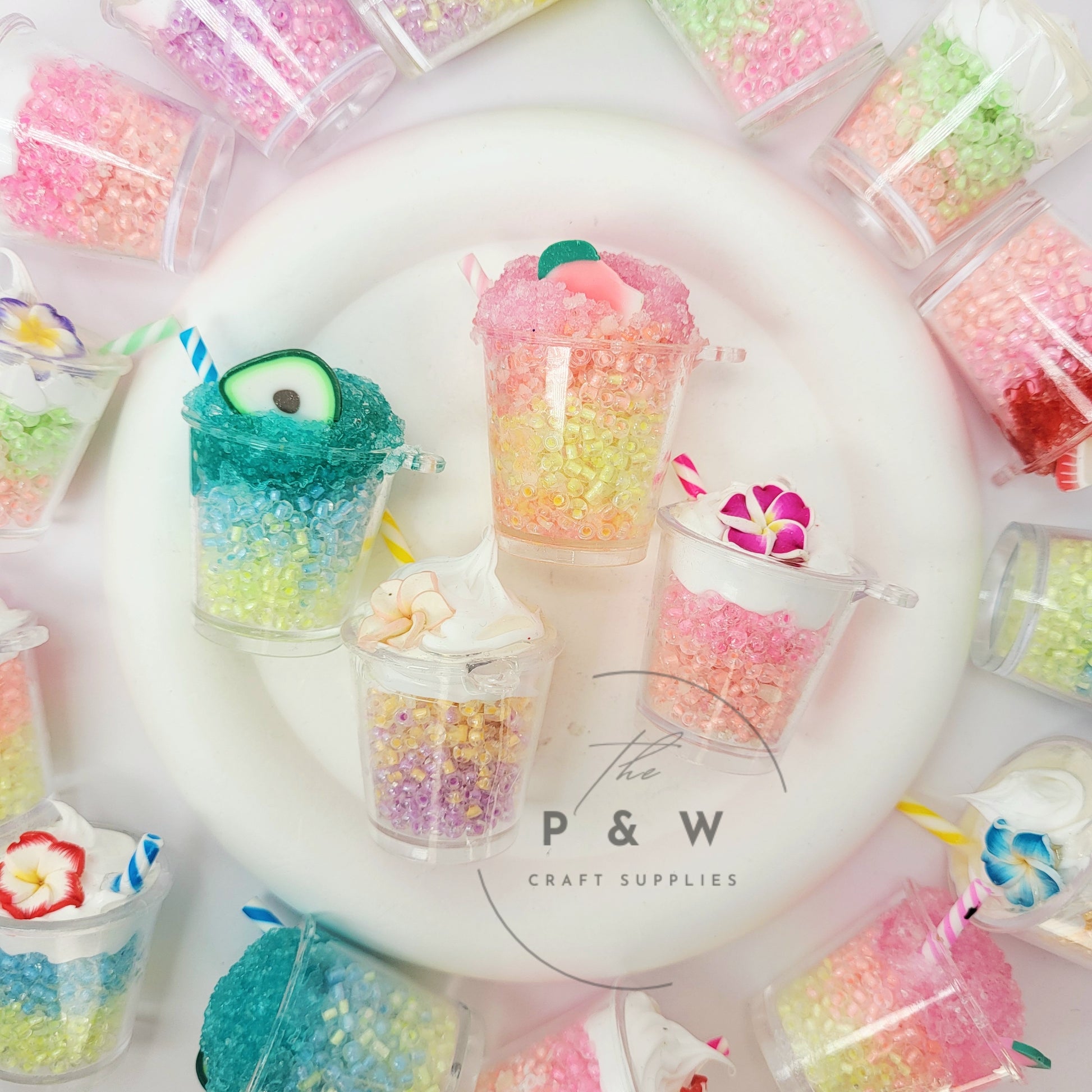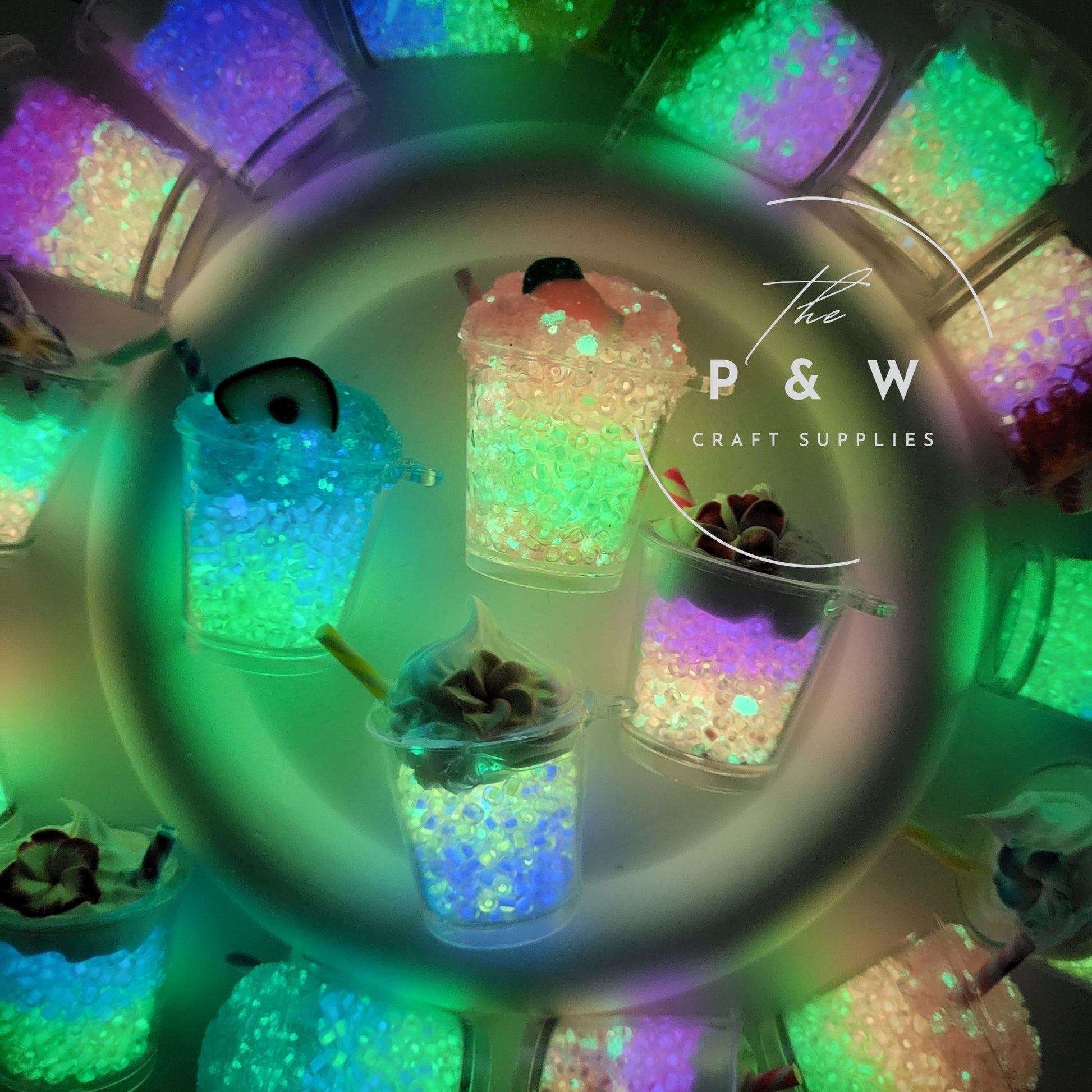 Bring your crafts to life with these adorable mini drink cup charms that glow beautifully in the dark! Each cup is filled with colorful beads and topped with whipped cream-like resin, straws, or fruit embellishments, making them look just like tiny desserts.