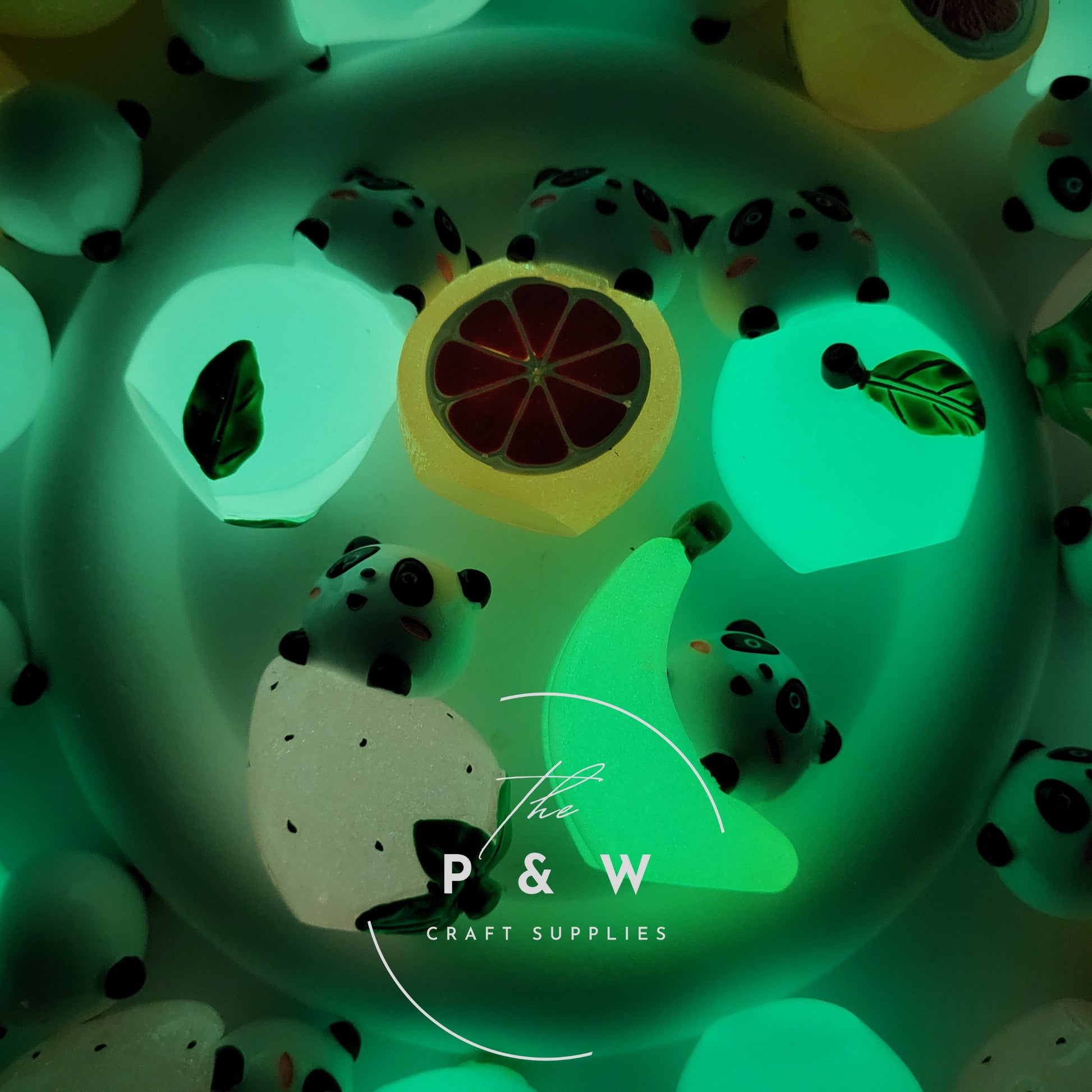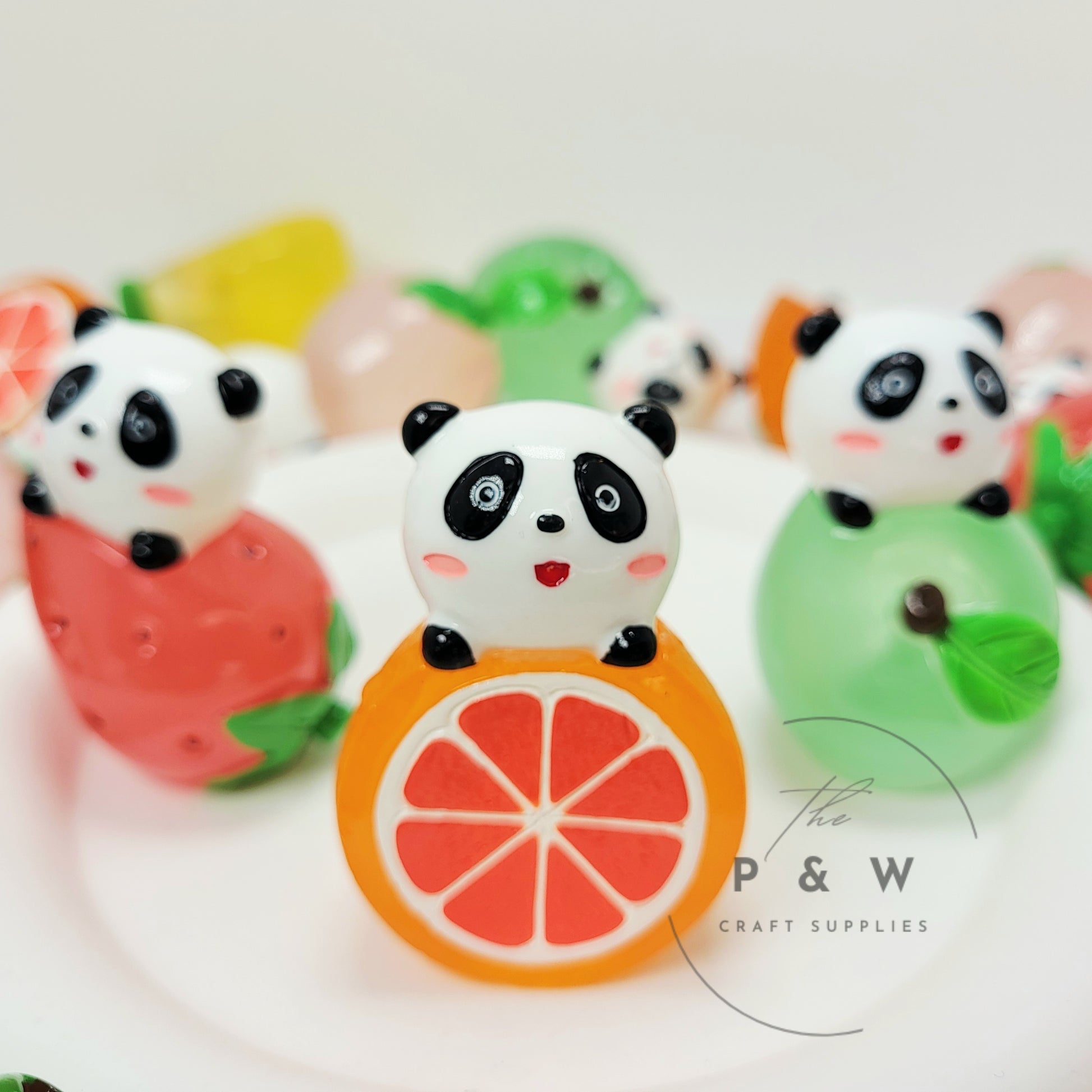 Add a fun and magical twist to your crafts with these adorable Panda Fruit Figurines! Each figurines features a cute panda paired with colorful fruits like bananas, peaches, and citrus slices. Best of all, the fruit parts glow in the dark after absorbing light, making them stand out in any project. Perfect for resin art, keychains, bag charms, or any kawaii DIY creations.