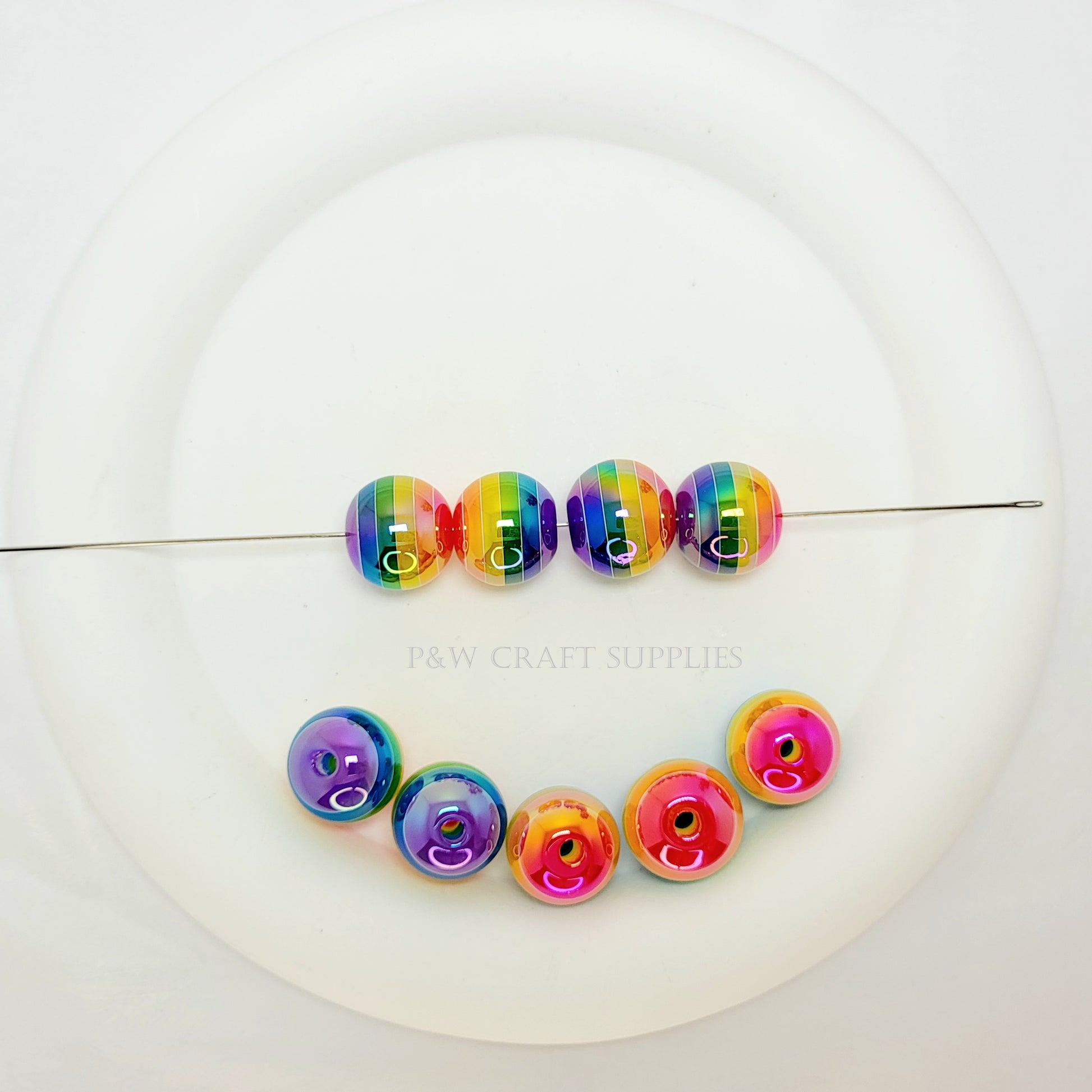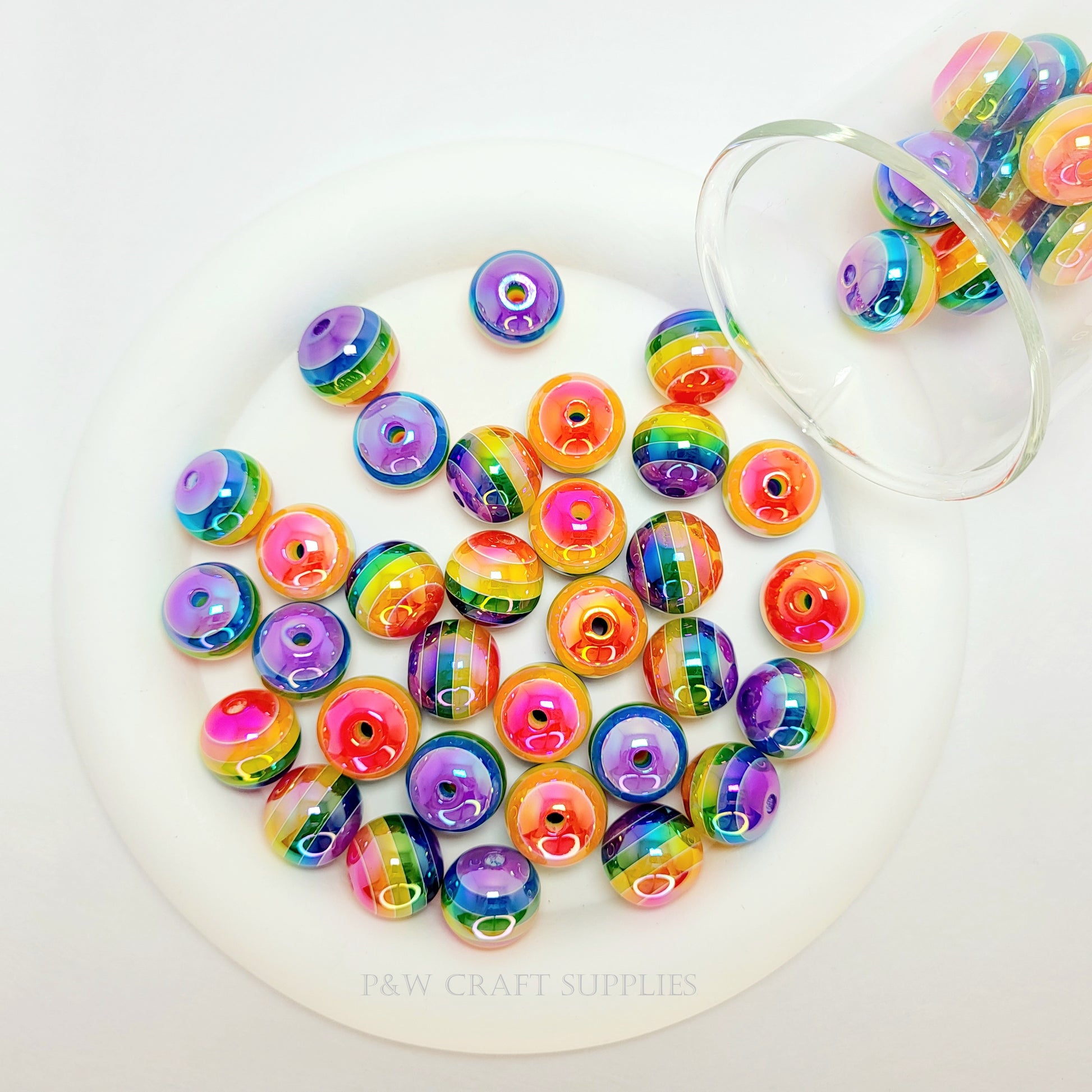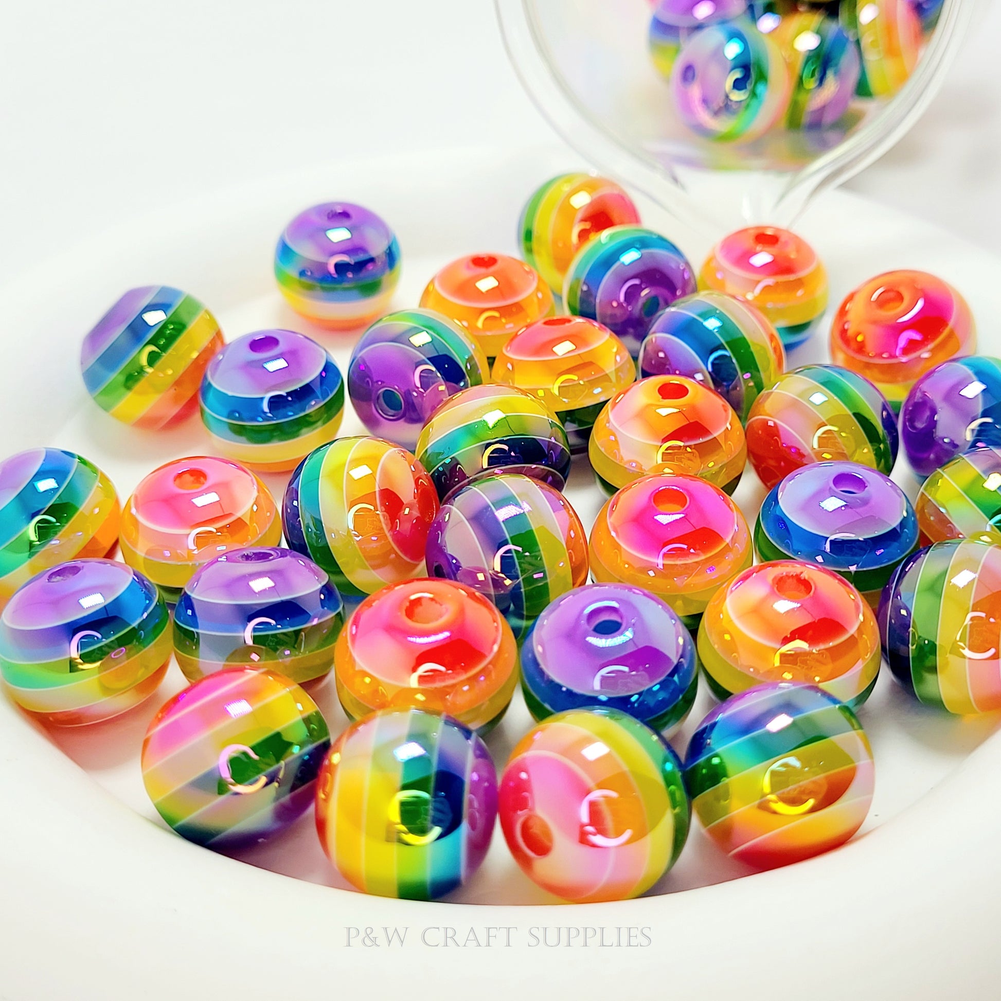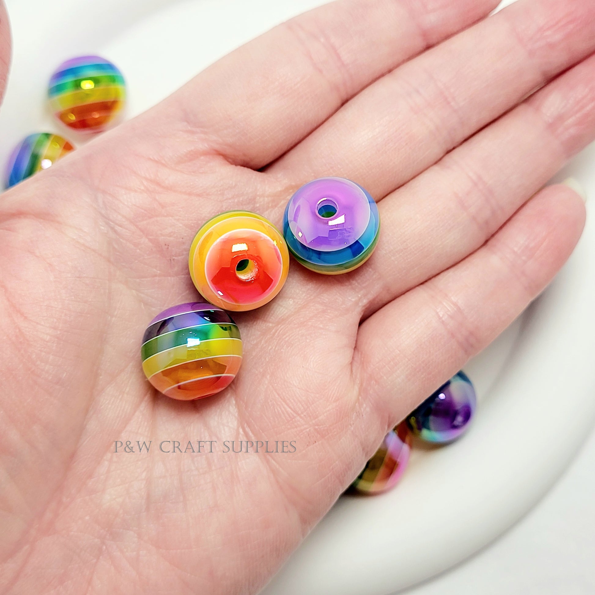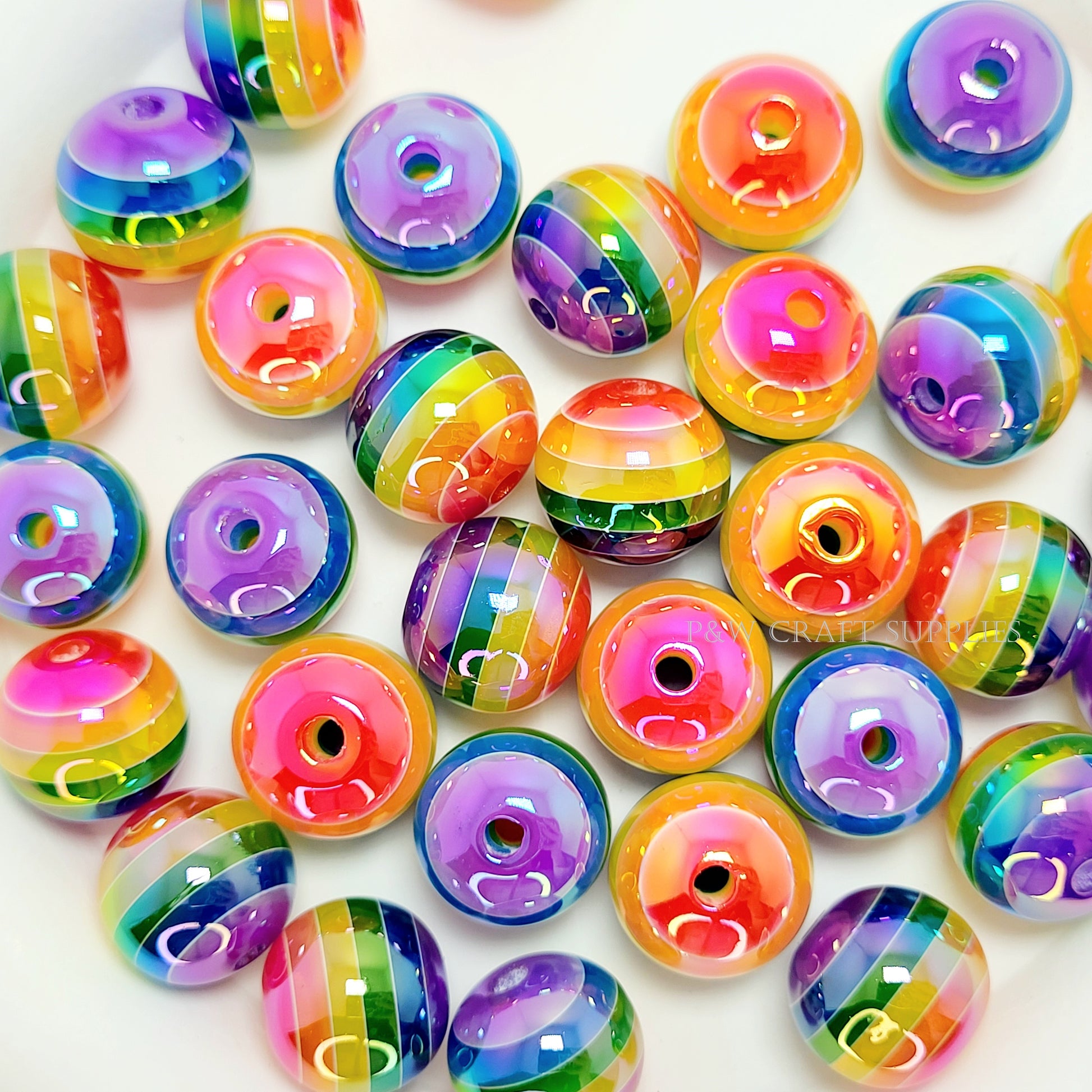 Add a bold pop of color to your crafts with these Vibrant Rainbow Striped Beads! Measuring 16mm in size, these round beads feature seamless, multicolored stripes that transition smoothly across the surface, creating a glossy, eye-catching effect. Their high-shine finish enhances the colors, making them perfect for jewelry-making, keychains, bag charms, and DIY accessories!